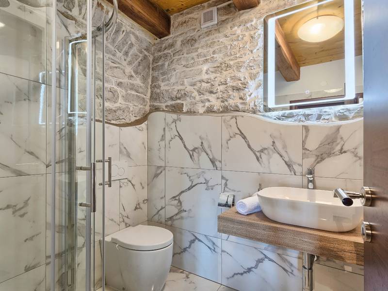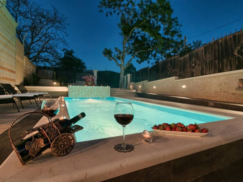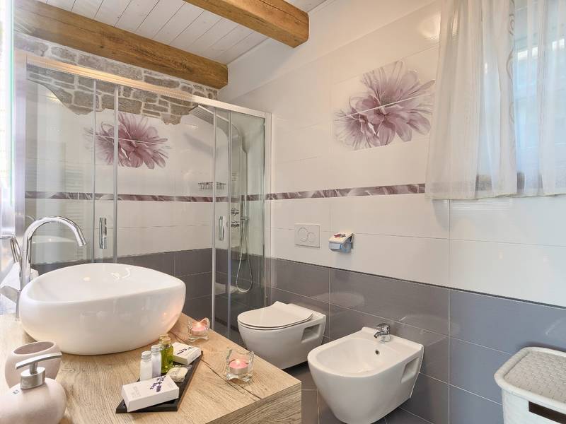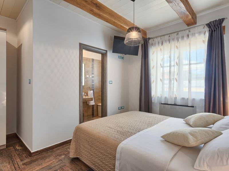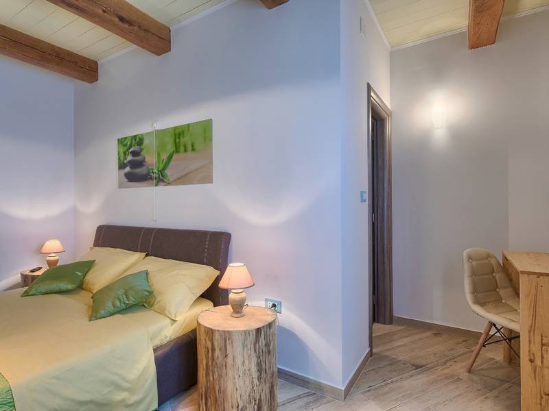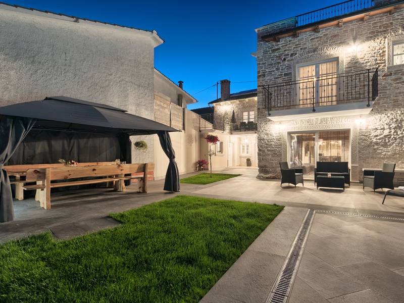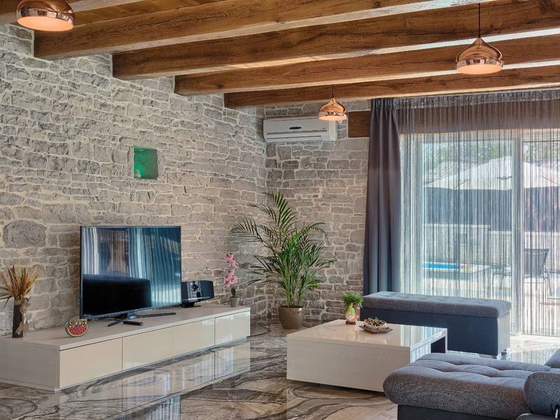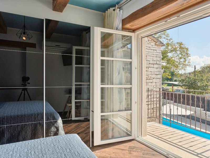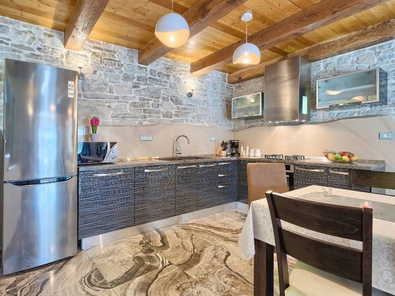 Located in a peaceful and authentic Istrian village near Pazin, this charming stone villa perfectly combines traditional architecture with modern comfort. Carefully renovated with attention to original details, the house offers a warm and relaxing atmosphere, ideal for a family holiday or a stay with friends.The spacious interior is designed to ensure maximum comfort and functionality. Guests have access to four elegantly furnished bedrooms, each with a private bathroom, air conditioning, and a TV, while the shared living room with a fireplace creates a cozy space for gathering throughout the year. A modern, fully equipped kitchen is connected to the dining area, providing the perfect setting for shared meals.The outdoor area further enhances the sense of privacy and relaxation. The fenced garden with a swimming pool, sun loungers, and covered terraces offers ideal conditions for enjoying the outdoors. Guests can also use the BBQ, children’s playground, and secured parking within the property.Thanks to its central location, the villa is an excellent starting point for exploring Istria – from picturesque towns and historical landmarks to outstanding restaurants and wine roads. It is the perfect choice for those seeking an authentic Istrian experience combined with privacy and comfort.
