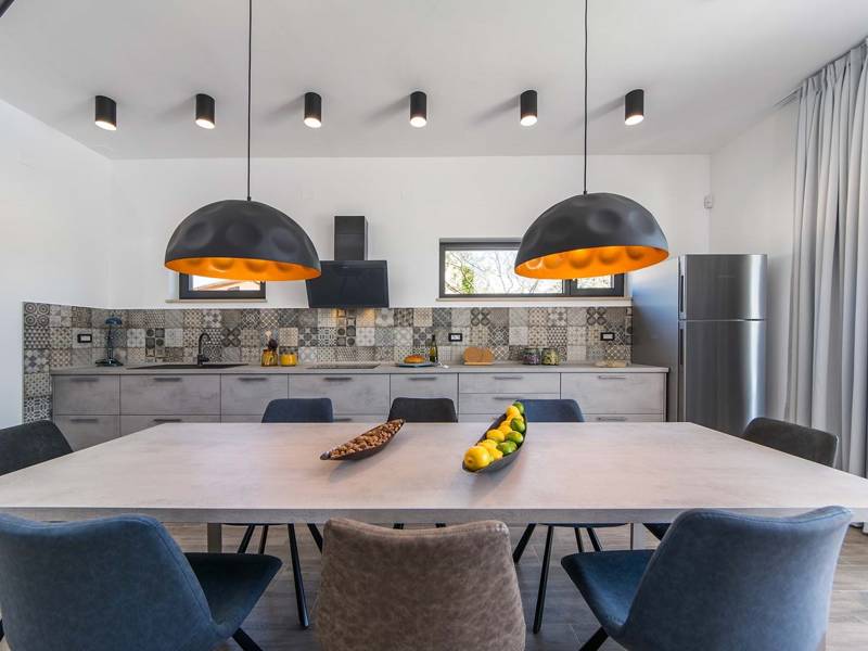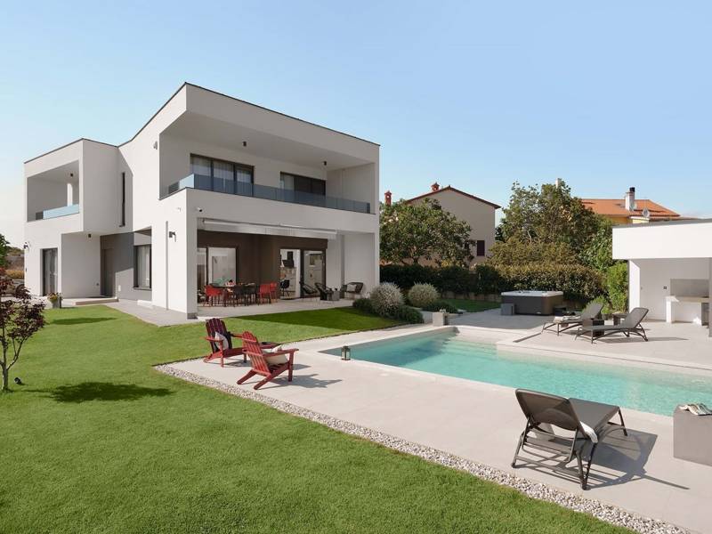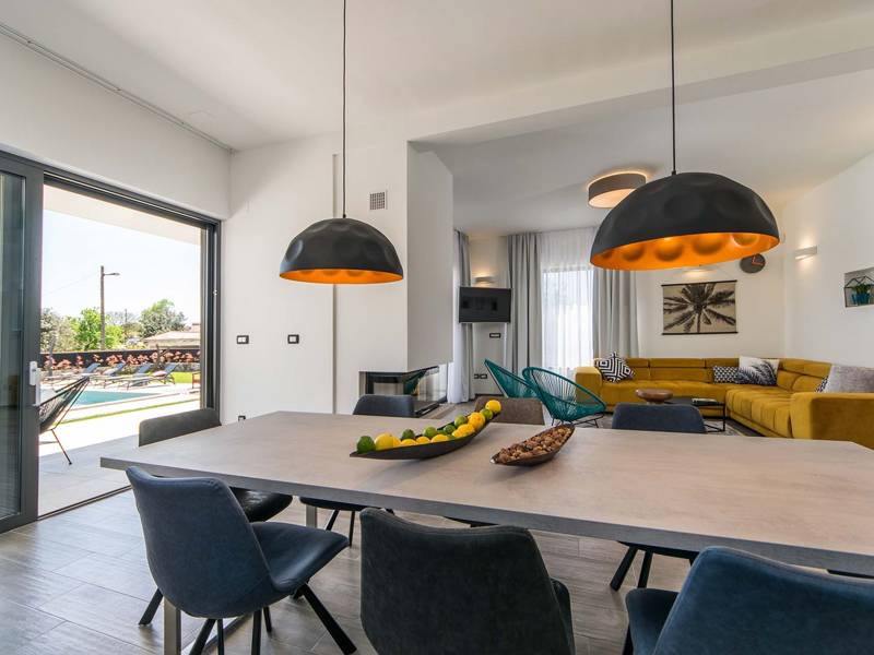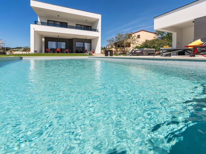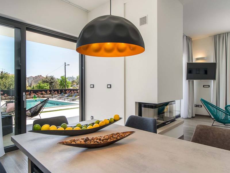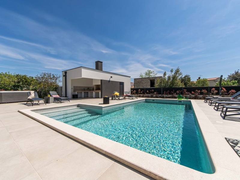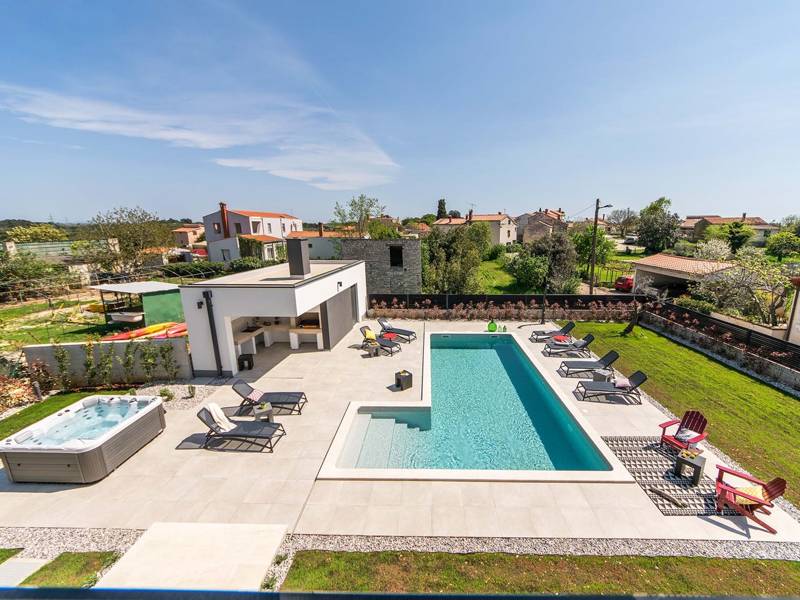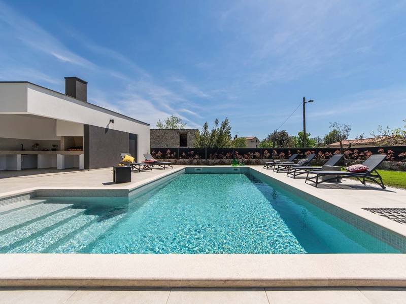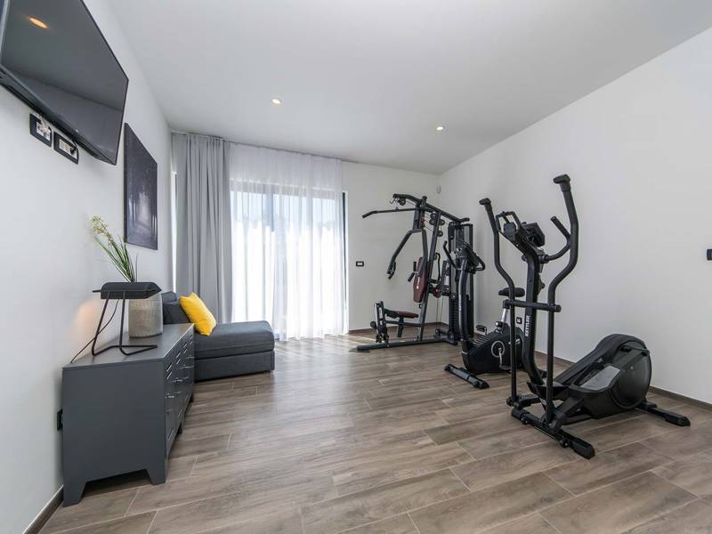 This inviting and beautifully bright vacation house is the ideal place to spend a vacation in Istria. It has over 250 square meters of living space. This villa with pool features a living room and a kitchen overlooking a veranda in the front and four bedrooms with a matching number of bathrooms. There are also gym, sauna and a jacuzzi. On top of all, the house has a view of the sea and the nearest beach is just a little over one kilometer away. The interior decoration of this comfortable Villa is modern and eye-pleasing, with lots of natural light thanks to its large windows.Some of the properties don’t allow youth groups. If you are booking an accommodation facility as a group of young individuals, contact our agency before making the reservation in order to check whether the requested property allows your stay.