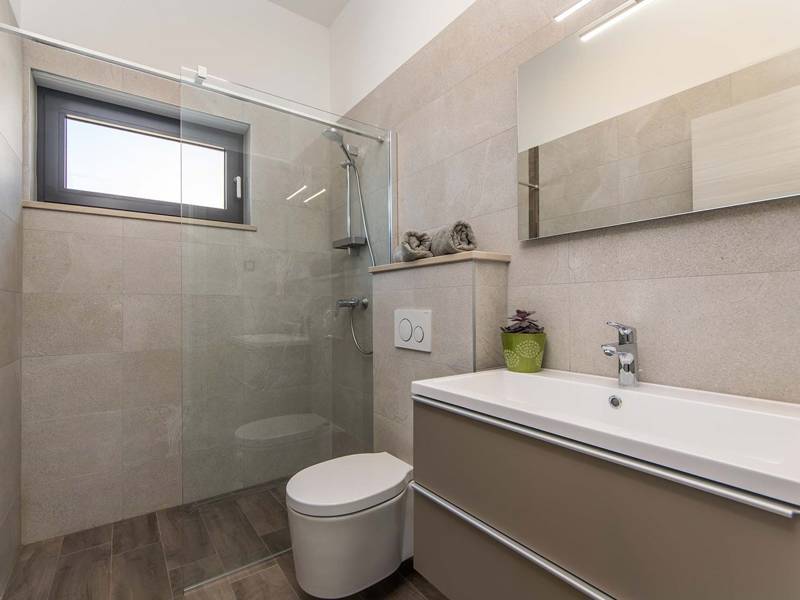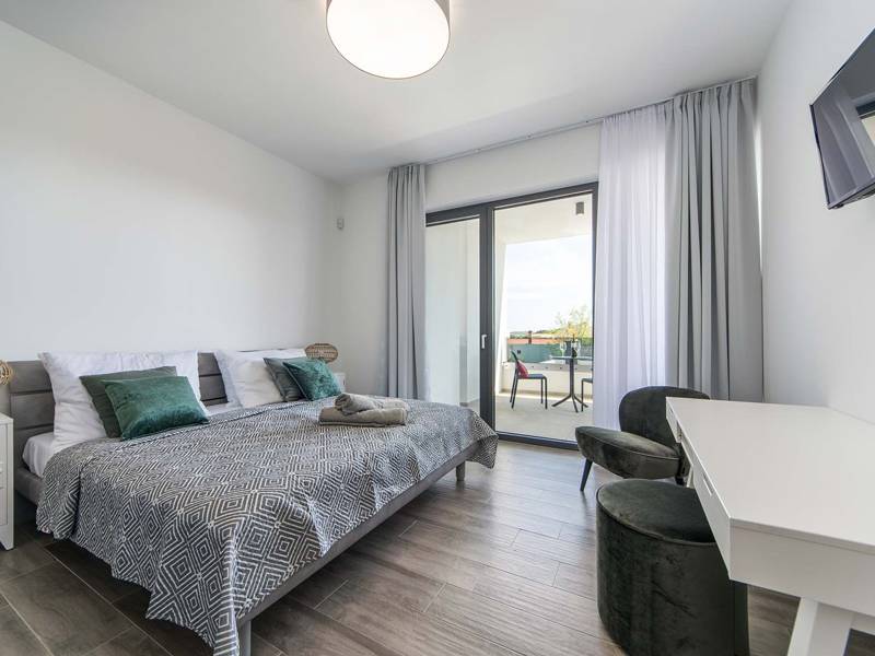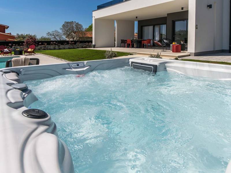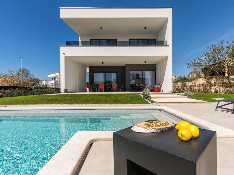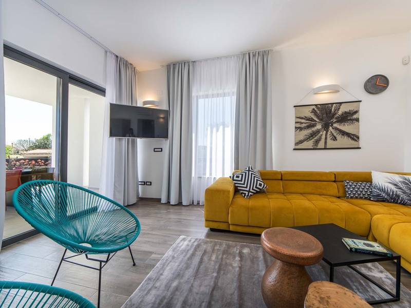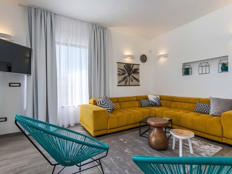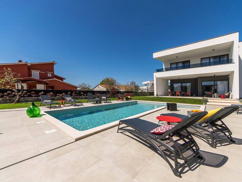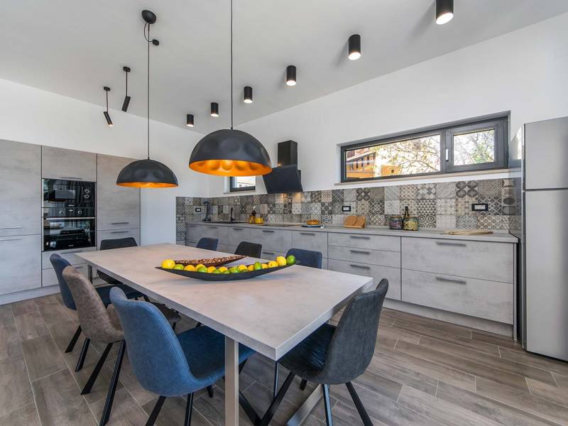 This inviting and beautifully bright vacation house is the ideal place to spend a vacation in Istria. It has over 250 square meters of living space. This villa with pool features a living room and a kitchen overlooking a veranda in the front and four bedrooms with a matching number of bathrooms. There are also gym, sauna and a jacuzzi. On top of all, the house has a view of the sea and the nearest beach is just a little over one kilometer away. The interior decoration of this comfortable Villa is modern and eye-pleasing, with lots of natural light thanks to its large windows.Some of the properties don’t allow youth groups. If you are booking an accommodation facility as a group of young individuals, contact our agency before making the reservation in order to check whether the requested property allows your stay.
