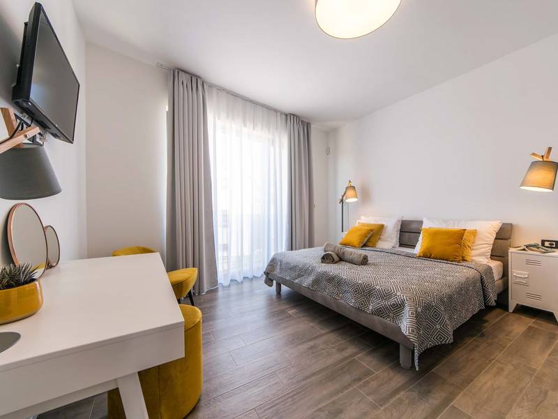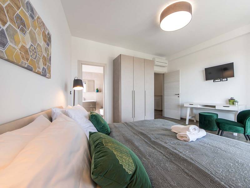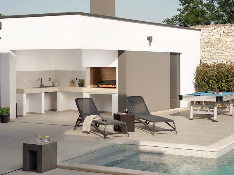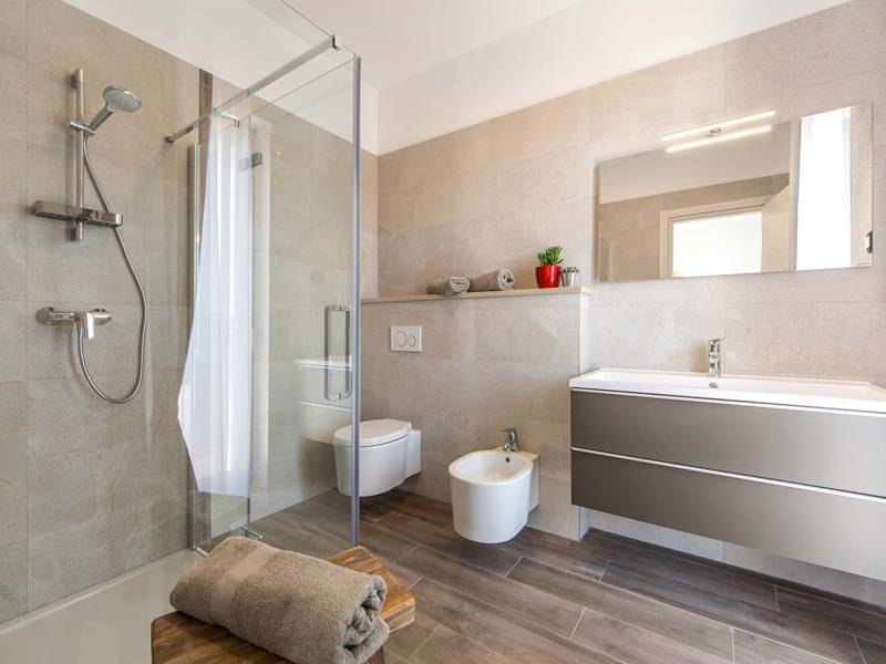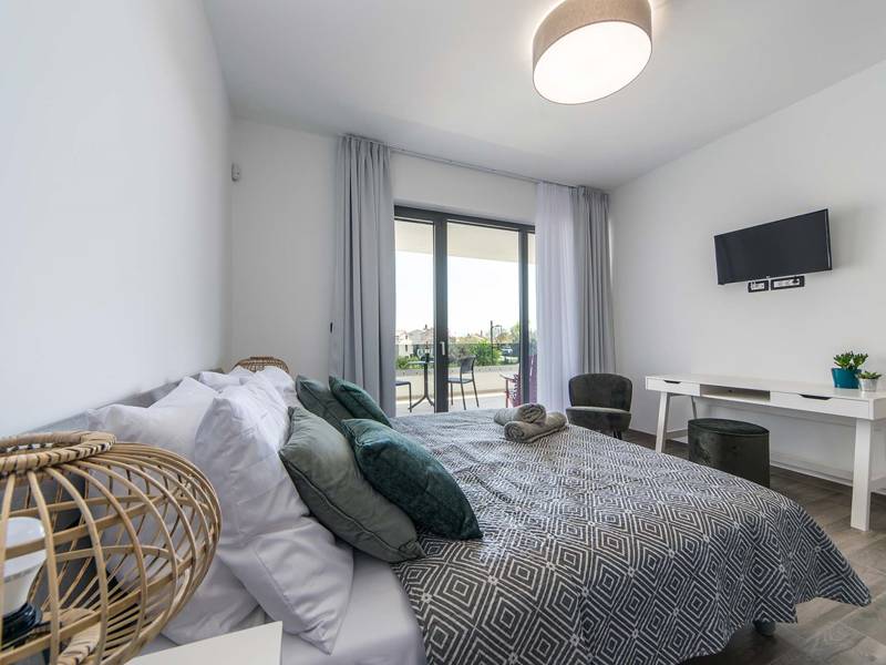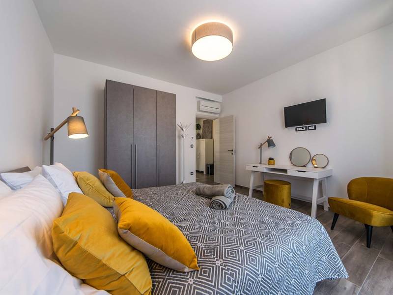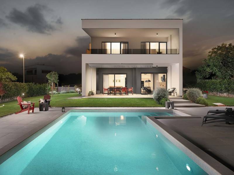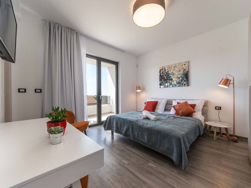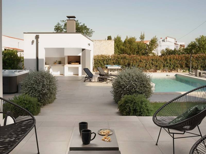 This inviting and beautifully bright vacation house is the ideal place to spend a vacation in Istria. It has over 250 square meters of living space. This villa with pool features a living room and a kitchen overlooking a veranda in the front and four bedrooms with a matching number of bathrooms. There are also gym, sauna and a jacuzzi. On top of all, the house has a view of the sea and the nearest beach is just a little over one kilometer away. The interior decoration of this comfortable Villa is modern and eye-pleasing, with lots of natural light thanks to its large windows.Some of the properties don’t allow youth groups. If you are booking an accommodation facility as a group of young individuals, contact our agency before making the reservation in order to check whether the requested property allows your stay.