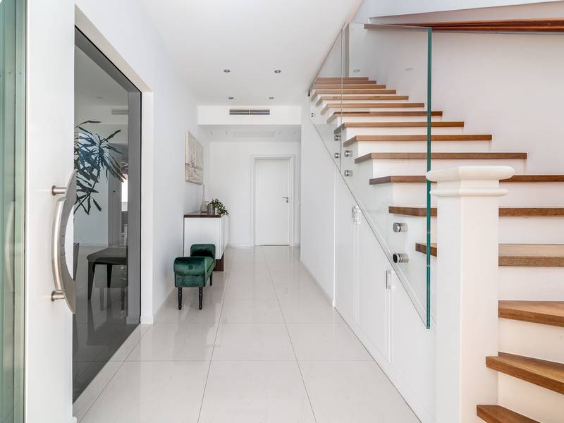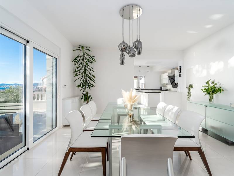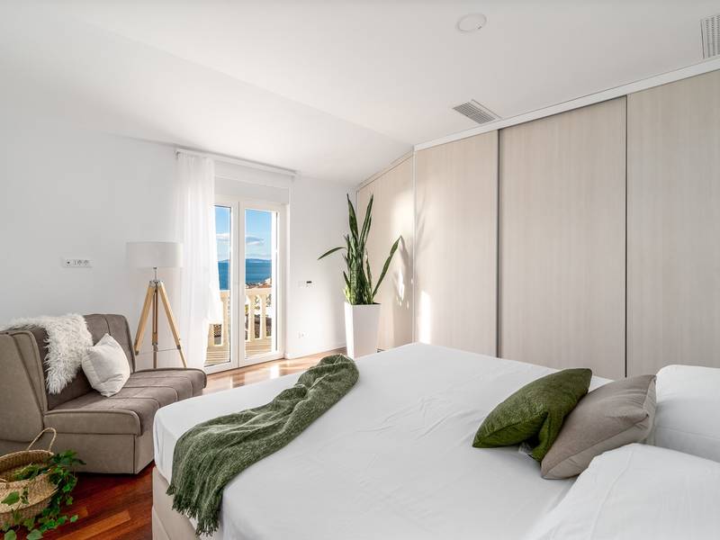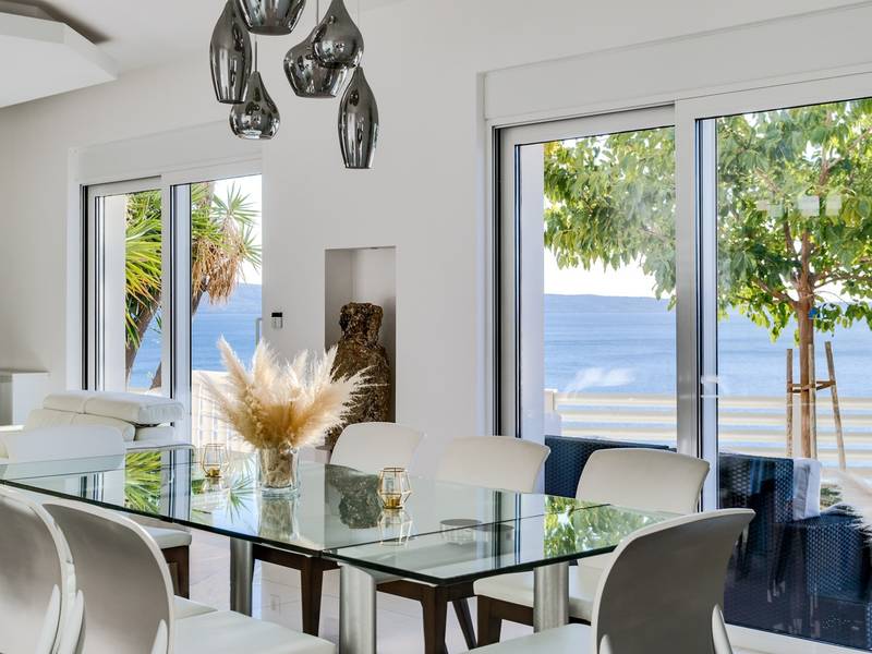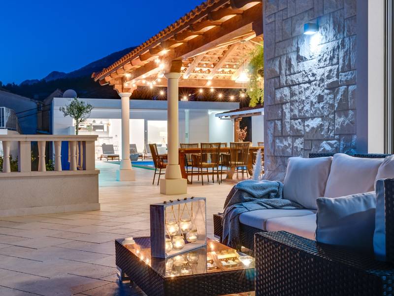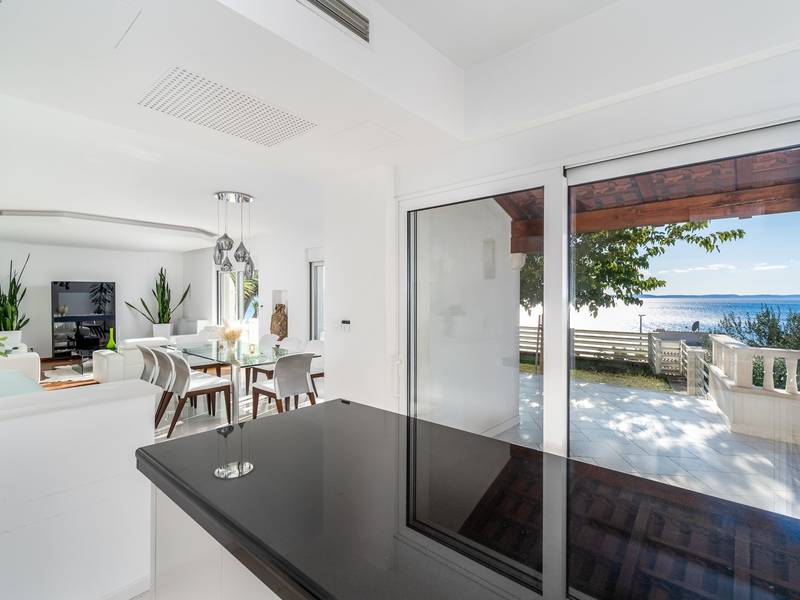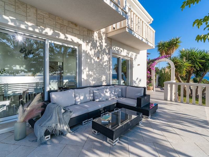Villa MaToLi is a stylish and comfortable 250 sqm property on an 850 sqm fenced plot and can accommodate 8+1 people. Villa MaToLi offers a private and heated pool 10m x 5m, a summer kitchen, an outdoor dining area, a fully air-conditioned interior with free WiFi, a stylish living room, a fully equipped kitchen, 4 bedrooms (each with sea views and a balcony), and 3 bathrooms.Villa MaToLi is located in Podstrana at the most beautiful part of the Dalmatian coast, above the coastal road in a quiet area between the famous town Split (10 km to center) and small-town Omiš and Cetina river (13 km), so staying here offers amazing sea views and unforgettable sunsets, very comfortable and stylish accommodation, besides that you can also experience a well wide spectrum of opportunities for an active holiday. Several restaurants and shops are within a short driving distance (200m - 2km). The car is recommended, and there is a secured and fenced parking lot at the property for 2-3 cars and a garage for 1.Seaview Villa MaToLi offers:* The outdoor offers a private and heated swimming pool 10m x 5m, a very spacious sun deck area with 8 deck chairs and two covered areas, a covered outdoor dining area for 10 people, a summer kitchen, a traditional barbecue area, an outdoor shower, and a separate toilet. There is also a comfortable lounge corner in front of the living room, so there are multiple areas where you can enjoy your privacy, read a book, or simply enjoy and dine alfresco with your family/friends.* The ground floor offers a fully air-conditioned living and dining area that has glass doors on the Southside, offering indeed amazing sea views and a lot of daylight inside. There is a fully equipped and modern kitchen with all the amenities that a modern guest needs for a relaxing stay, a direct approach to an outdoor dining area, a stylish dining area, comfortable sofas, a flat-screen TV, and a PS4 for your youngest members. On the Westside, there is a Bedroom No1 with a double bed of 140cm x 200cm, an air-conditioned, TV, a direct approach toward the pool area, and an en-suite bathroom with a shower. There is also a separate toilet, and a washing machine is next to it.* Indoor staircase with a glass wall offers daylight in every corner of this lovely property interior, and it takes you to the first floor that offers a Bedroom No2 (South-East) with a Queen size bed 160cm x 200cm, an air conditioner, en-suite bathroom with a shower, a balcony with sea views. A Bedroom No3 (South) with a King size bed 180cm x 200cm, a sofa that converts into a sofa bed for 1 person, a balcony with a sea view. A Bedroom No4 (South-West) with a Queen size bed 160cm x 200cm, an air conditioner, and a balcony with sea views. Bedrooms No3 and No4 share a family bathroom with two sinks and a shower. There is a separate toilet next to it.This villa is a perfect choice for a family or friends' vacation close to the beach, where you can try it all or just enjoy and experience the relaxing mode of life, staying at this amazing villa.Extra services (not included) recommended by our agency, Feriehome:- You can order a grocery delivery from the comfort of your sofa, delivered to your villa at the agreed time;- Enjoy a culinary experience with an in-villa private chef who can prepare everything, from a romantic dinner to a family-friendly dinner;- You can have an in-villa massage with our professional masseuse who can show their therapeutic skills;- Get a feel for the Adriatic and some sailing experience with a sailing boat (+skipper);- Take a boat tour to explore the middle Dalmatian coast and islands...for more information, we are at your disposal and will gladly help.Looking forward to your inquiry,Your Feriehome agency team :)