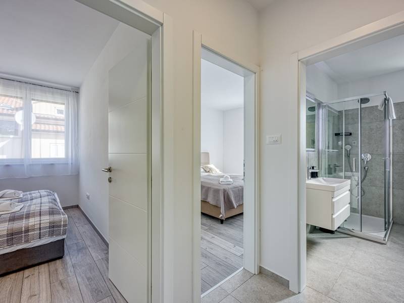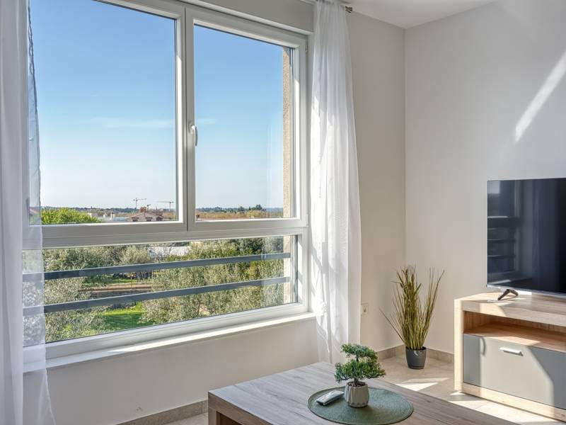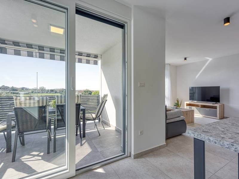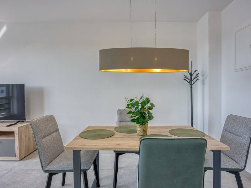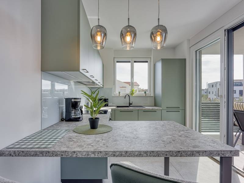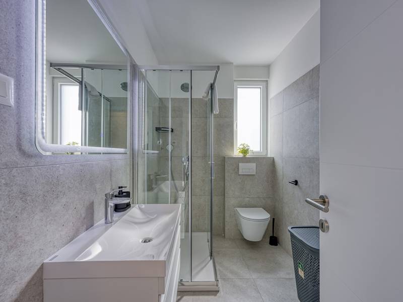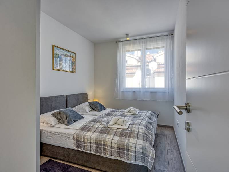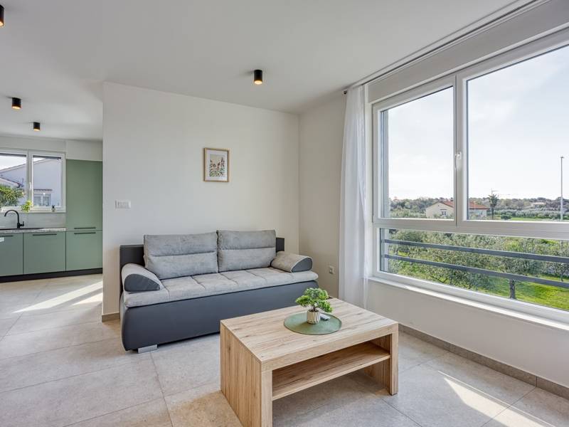 This modern and comfortably furnished apartment is located in a newly built apartment house (2nd floor), ideal for a family vacation or a group of friends. The apartment consists of a spacious living room with a fully equipped kitchen equipped with all necessary appliances and amenities, and the balcony provides additional comfort and the opportunity to enjoy the fresh air, with a view of the city and the sea in the distance.The apartment has 2 comfortable bedrooms that guarantee quality sleep and privacy and one bathroom. For additional comfort, guests have a washing machine at their disposal, and a private parking lot in front of the building allows for carefree parking.This apartment is the perfect place to relax, and its modernity, functionality and comfort make it an excellent choice for all those who want to enjoy a peaceful environment, and yet be close to all the necessary amenities.