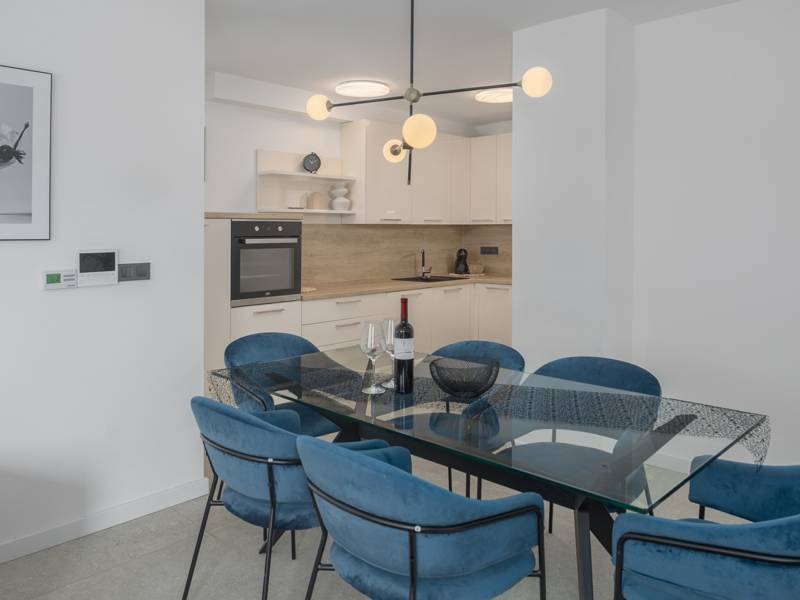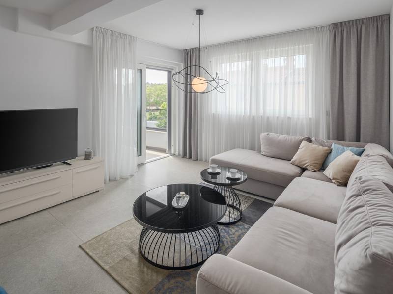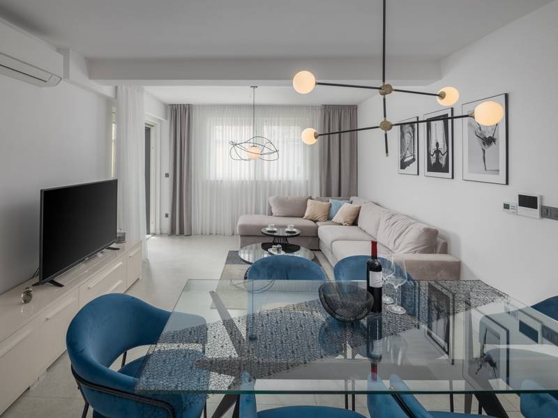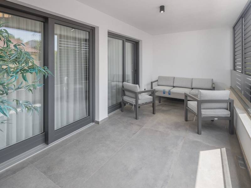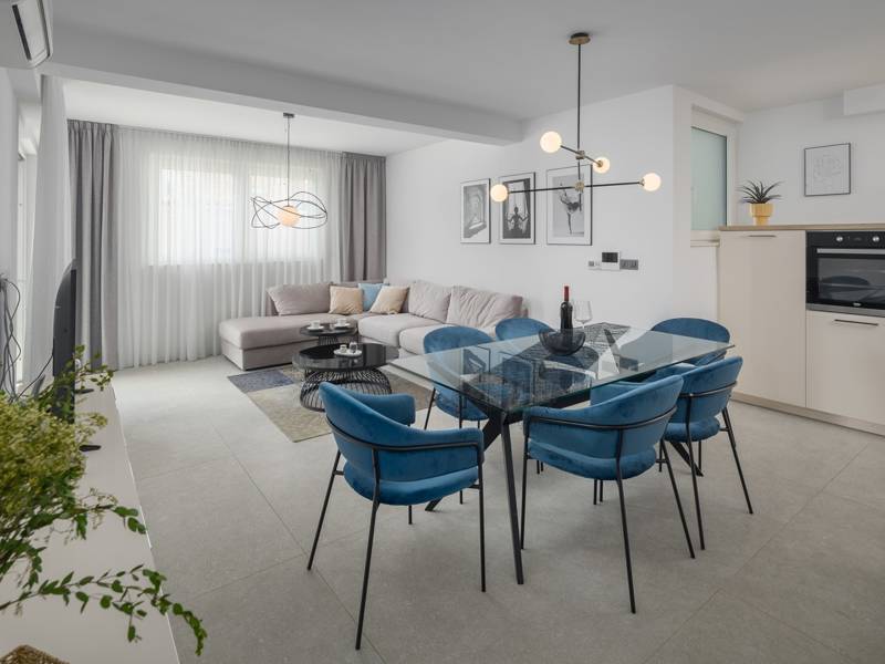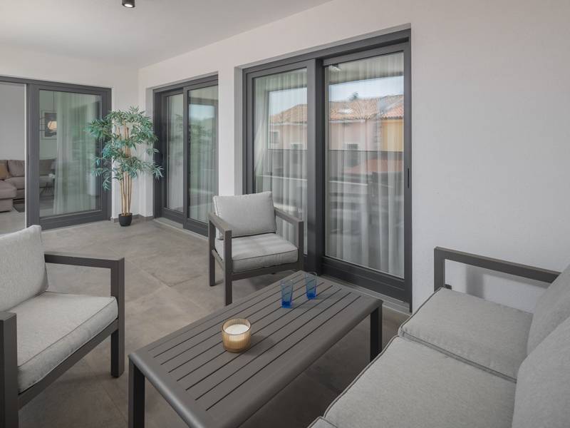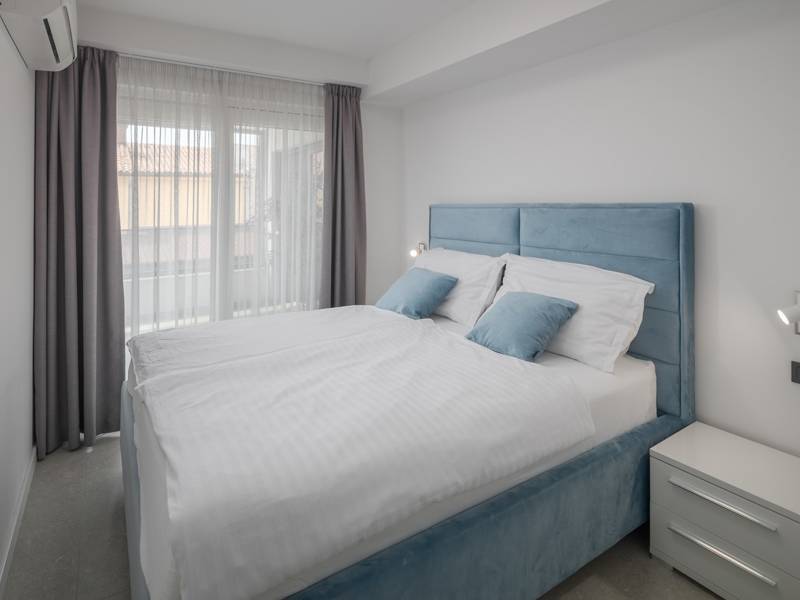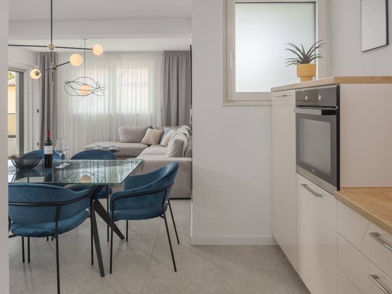 This modern and fully equipped apartment is located in the very center of Poreč, a few minutes walk from the old town and the beach.The apartment consists of two comfortable bedrooms, a spacious living room, a kitchen with a dining area, two bathrooms and a terrace ideal for relaxing after a day at the beach.It is fully air-conditioned and modernly furnished, with carefully selected details to provide guests with maximum comfort and a feeling of home.The apartment has a secured parking space in the garage, which is an exceptional convenience in the city center during the tourist season.