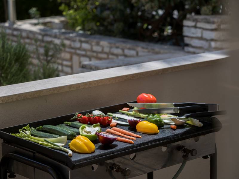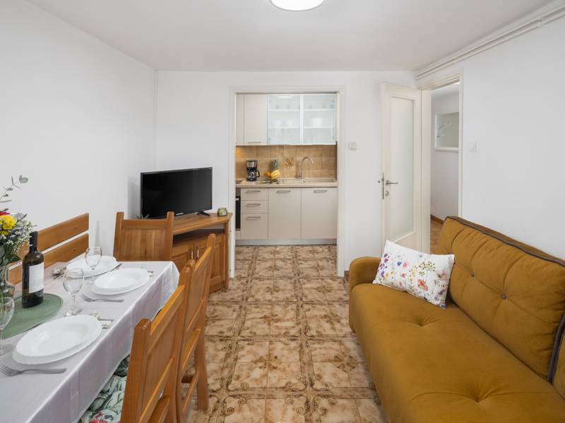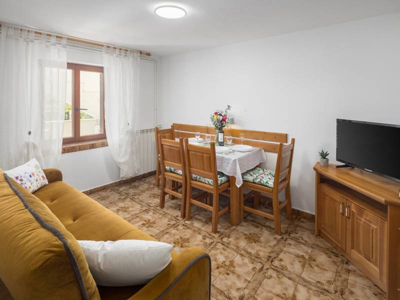 Apartment house Rita is located in a quiet location in Poreč, surrounded by greenery and a spacious garden. Guests can enjoy a private terrace or balcony, and a grill terrace for relaxing moments. The facility offers secured parking, air-conditioned apartments and accepts pets. (max 1 free, 2 and more with an additional charge) The city center is only a 15-minute pleasant walk away. App Rita No.4 is located on the ground floor, guests have at their disposal: a large private balcony, kitchen, living room with extra bed, bathroom and two bedrooms with double beds.