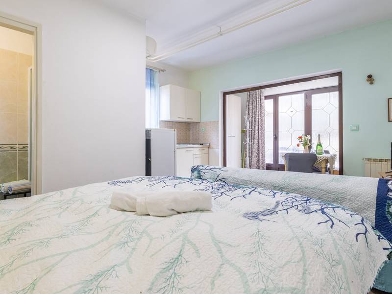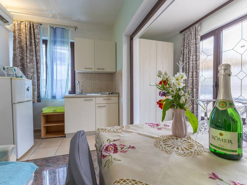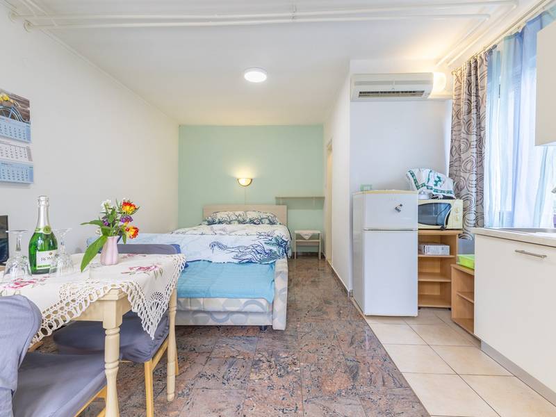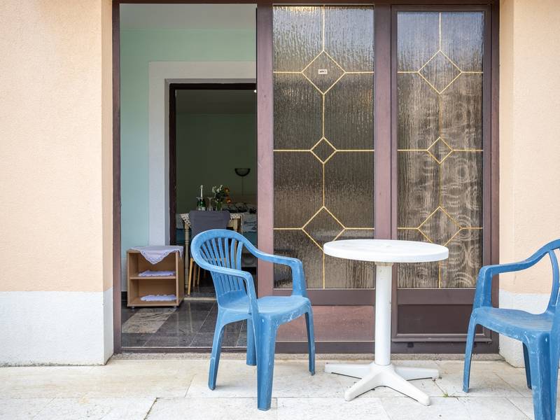 The apartment complex in the quiet Ivo Andrić settlement in Poreč consists of four pleasantly furnished apartments, ideal for a relaxed stay. The apartments are classically furnished and offer everything you need for a pleasant holiday - a functional kitchen, comfortable accommodation, air conditioning and free Wi-Fi. Guests have access to a secured parking space, as well as a beautifully landscaped courtyard with a garden and barbecue, perfect for socializing and enjoying the outdoors. This studio apartment is located on the ground floor and has its own private terrace.