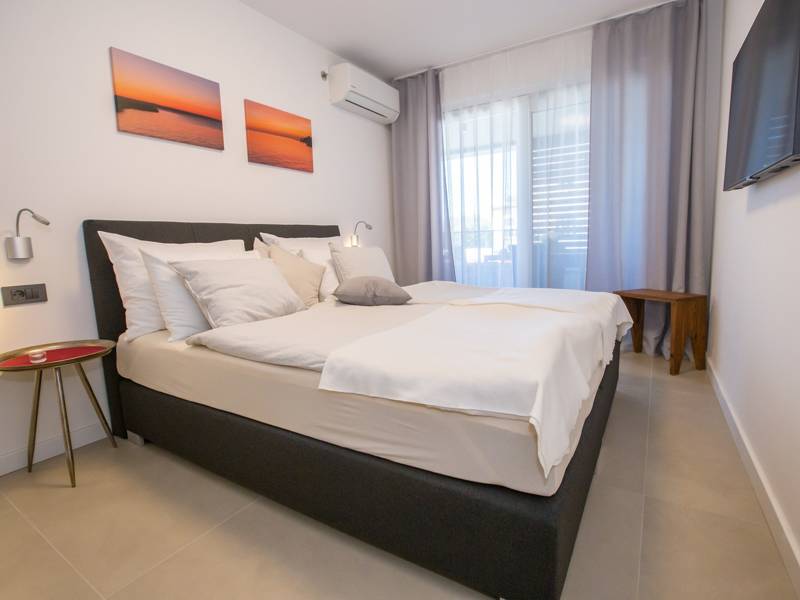 This beautiful two-bedroom apartment, featuring a spacious bathroom, comfortable terrace, and sauna, offers the perfect blend of comfort and luxury in the heart of Poreč. Situated close to picturesque streets and major attractions, it allows you to explore this stunning Istrian destination with ease. The interior of the apartment boasts a minimalist style with refined details, creating an elegant and contemporary space for relaxation. Each bedroom is designed with cozy beds to ensure a comfortable stay. On the terrace, you'll find a private sauna and a cozy outdoor seating area. Here, you can enjoy peaceful moments with refreshing sea breezes and beautiful views of the surroundings. The apartment is fully air-conditioned and equipped with all the necessary amenities to make you feel at home during your stay in Poreč. Enjoy a luxurious holiday experience in this wonderful city with this modernly furnished accommodation.