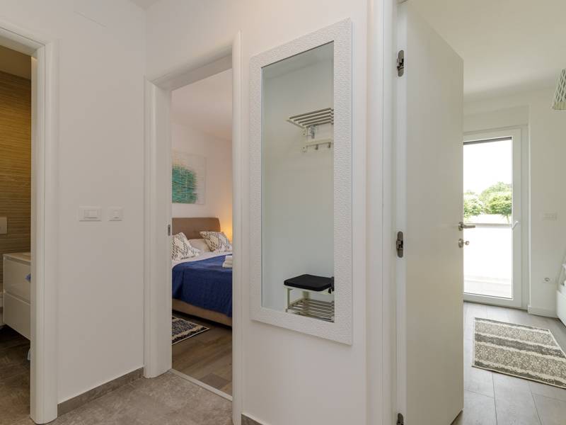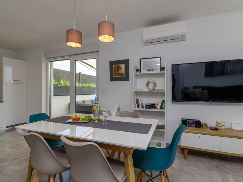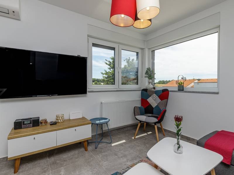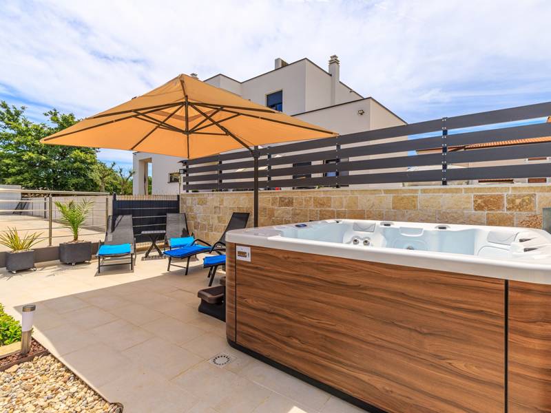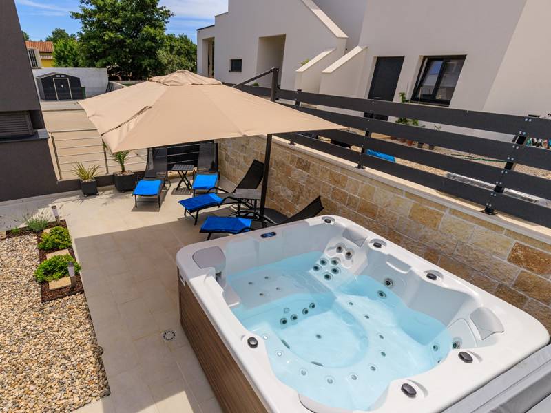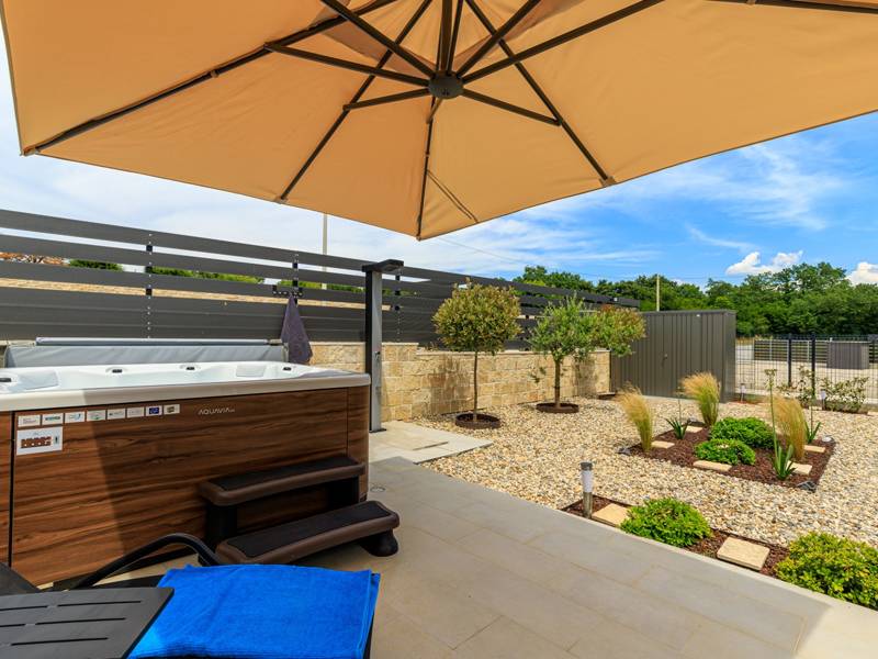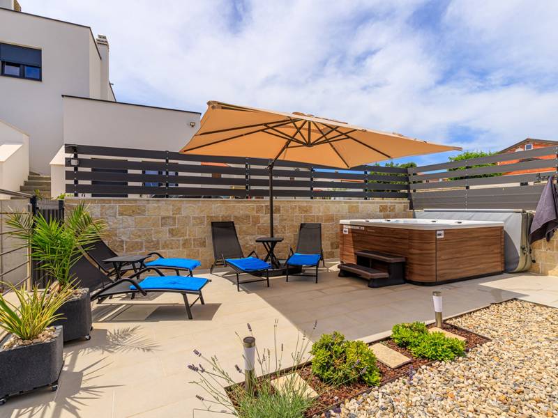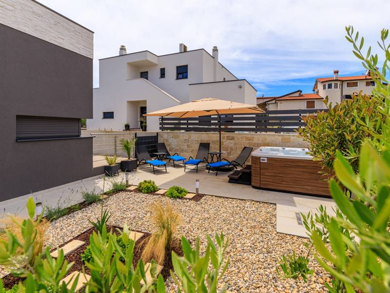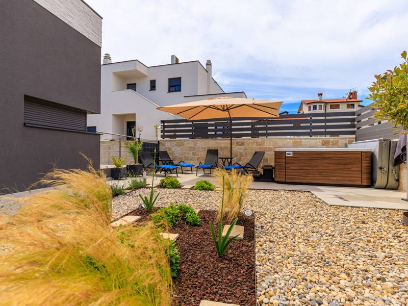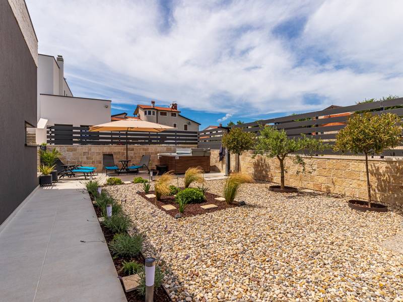 Just two kilometres away from Porec’s old historic town and beautiful beaches is the apartment Sabena. For the duration of your stay in the Sabena apartment, you can get a paddle board / SUP from the friendly hosts for free. With its 60 square meters, large terraces, beautiful garden with a jacuzzi, deck chairs, towels, parking space, fenced yard and bicycle rack the apartment is all a guest can wish for. Additionally, the apartment includes a safe for your belongings and both bedrooms have a TV. The air-conditioned spacious living room is equipped with a sofa bed, TV, WiFi and radio. The kitchen is modern and fully equipped. The bathroom includes a shower, iron, washing machine and hairdryer with a separate toilet. On the large terrace, you can enjoy a BBQ and just relax into the evening.