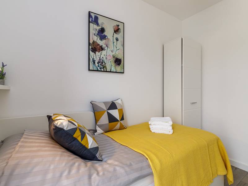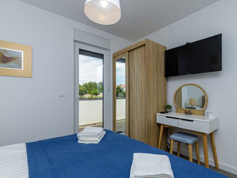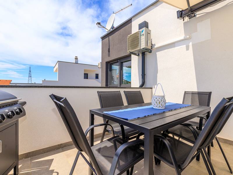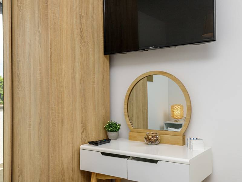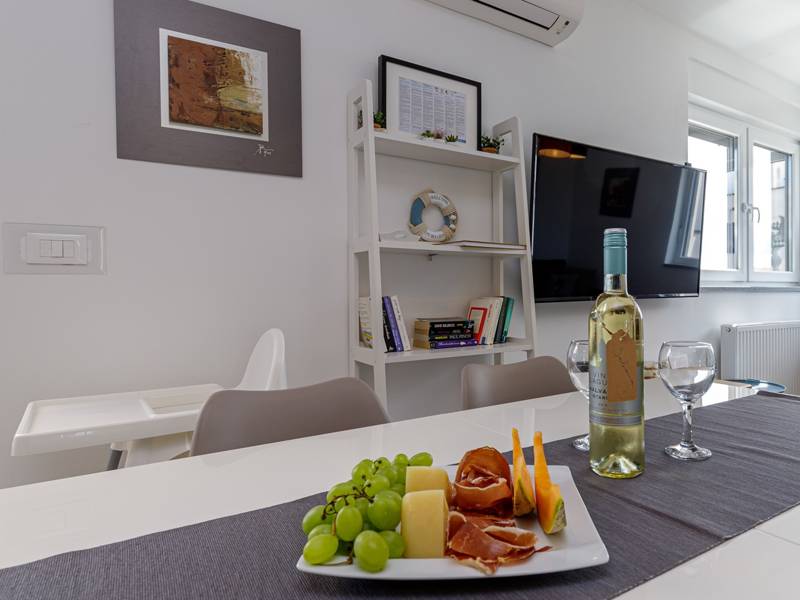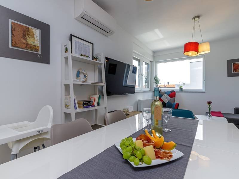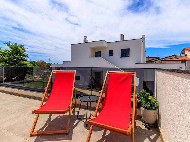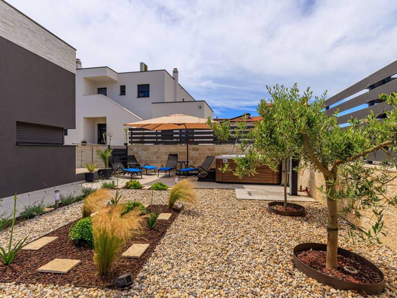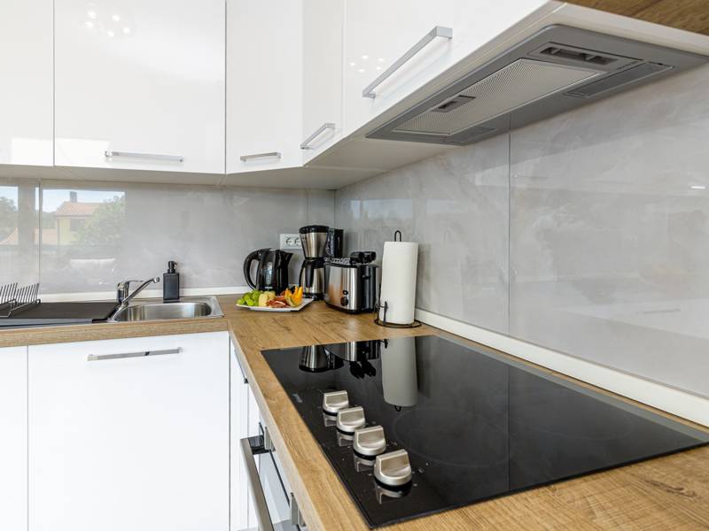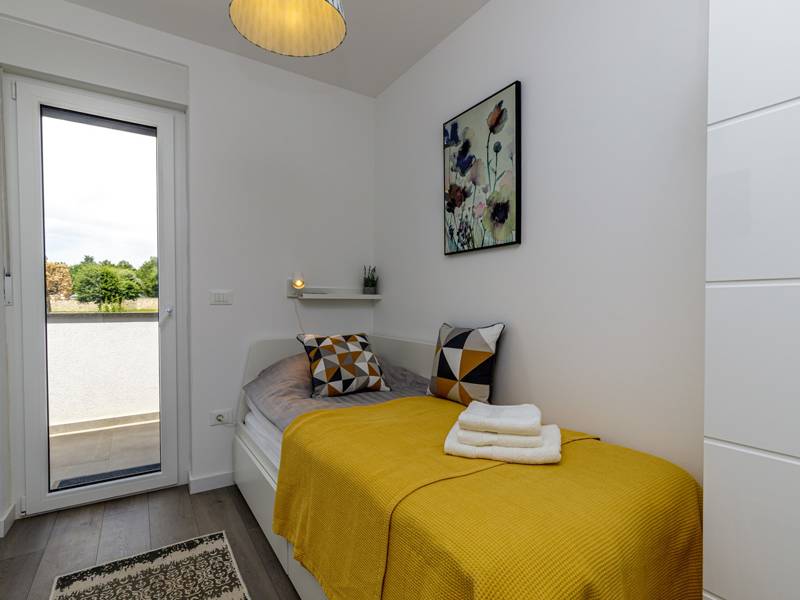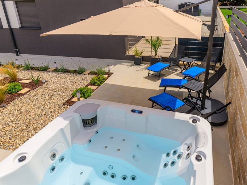 Just two kilometres away from Porec’s old historic town and beautiful beaches is the apartment Sabena. For the duration of your stay in the Sabena apartment, you can get a paddle board / SUP from the friendly hosts for free. With its 60 square meters, large terraces, beautiful garden with a jacuzzi, deck chairs, towels, parking space, fenced yard and bicycle rack the apartment is all a guest can wish for. Additionally, the apartment includes a safe for your belongings and both bedrooms have a TV. The air-conditioned spacious living room is equipped with a sofa bed, TV, WiFi and radio. The kitchen is modern and fully equipped. The bathroom includes a shower, iron, washing machine and hairdryer with a separate toilet. On the large terrace, you can enjoy a BBQ and just relax into the evening.
