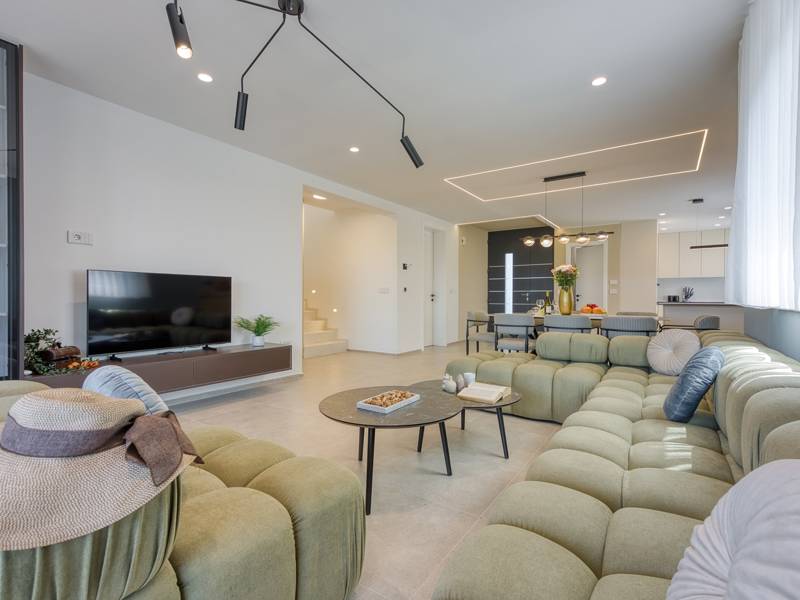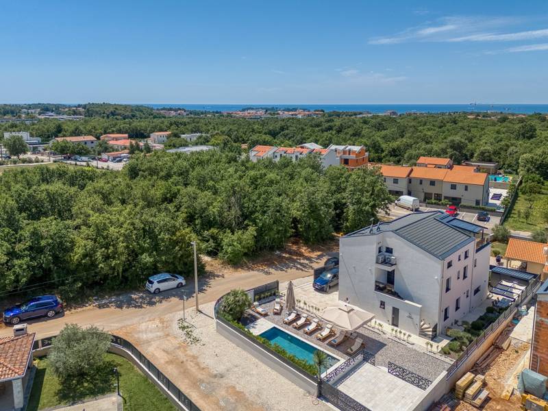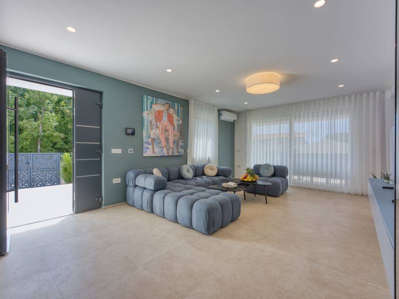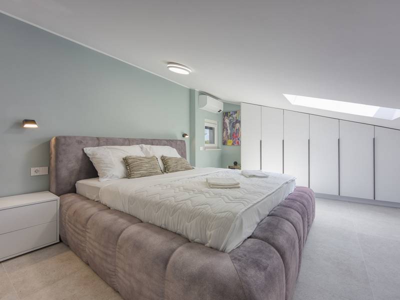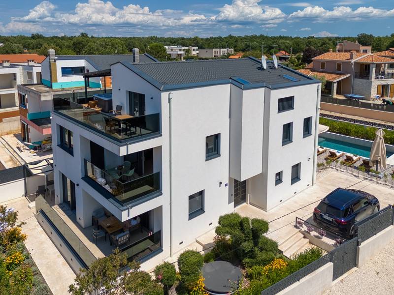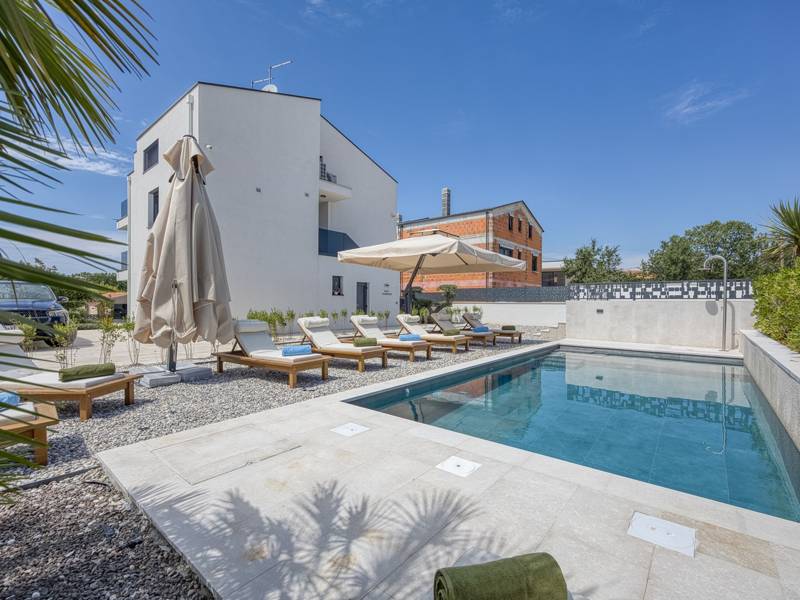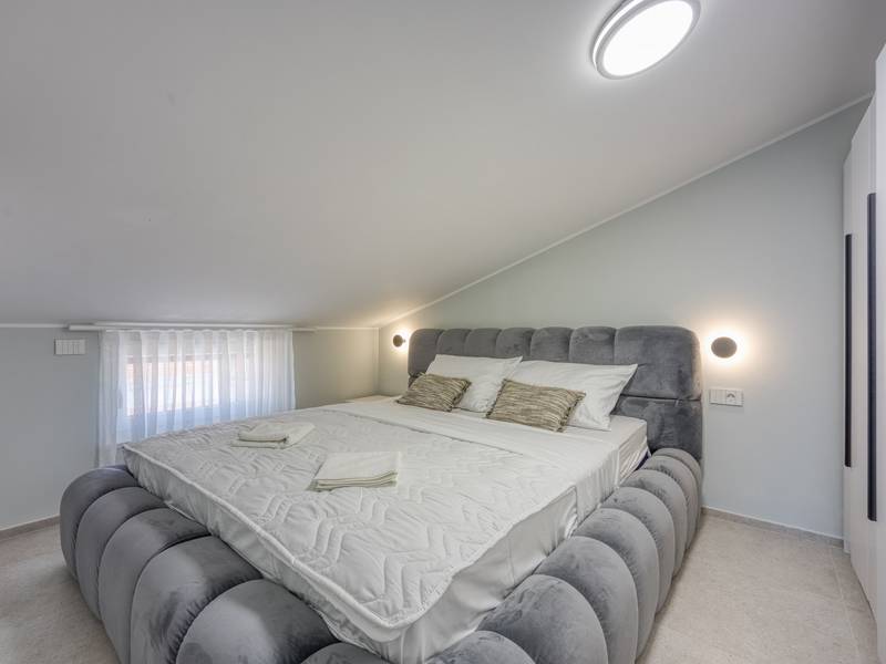 Located in a quiet area just 2 km from the beach and the center of Poreč, this luxurious and spacious holiday home is ideal for larger families or groups of friends seeking comfort, space, and privacy. The house consists of two separate living units spread over multiple floors and features a total of six bedrooms and six bathrooms, ensuring a comfortable and undisturbed stay.The first unit includes a living room, a fully equipped kitchen, and two bedrooms, one with an en-suite bathroom and the other with a bathroom adjacent to the room. The second unit spans two floors – on the first floor, there is a living room, kitchen, and two bedrooms, each with its own bathroom. The second floor features an additional living room and two bedrooms, one with an en-suite bathroom and the other with a bathroom adjacent to the room.The house is equipped with everything you need for a comfortable stay – every room is air-conditioned and has SAT-TV. Additionally, central heating ensures the house is cozy during the winter months. Free Wi-Fi, private parking, two fully equipped kitchens, and multiple living areas provide extra comfort.Enjoy the beautiful green garden, relax on the spacious ground-floor terrace with a grill, or unwind on the rooftop terrace with a whirlpool and stunning views. A true highlight is the 32 m2 private swimming pool with comfortable sun loungers – the perfect spot to sunbathe, refresh, and enjoy warm summer days.This property offers the perfect combination of tranquility, privacy, and proximity to the sea and all essential amenities – an ideal place for a carefree holiday, whether in summer or winter.Please note: Youth groups are not permitted in this accommodation.
