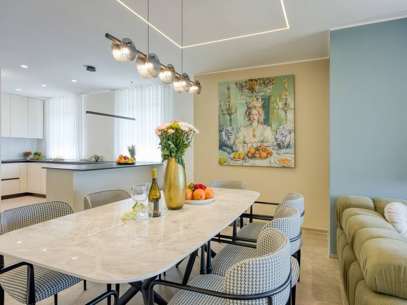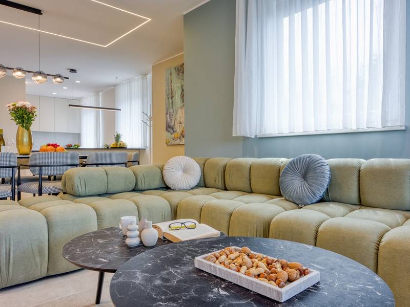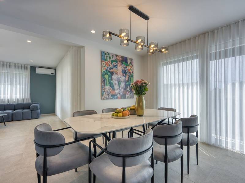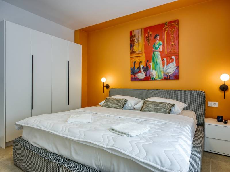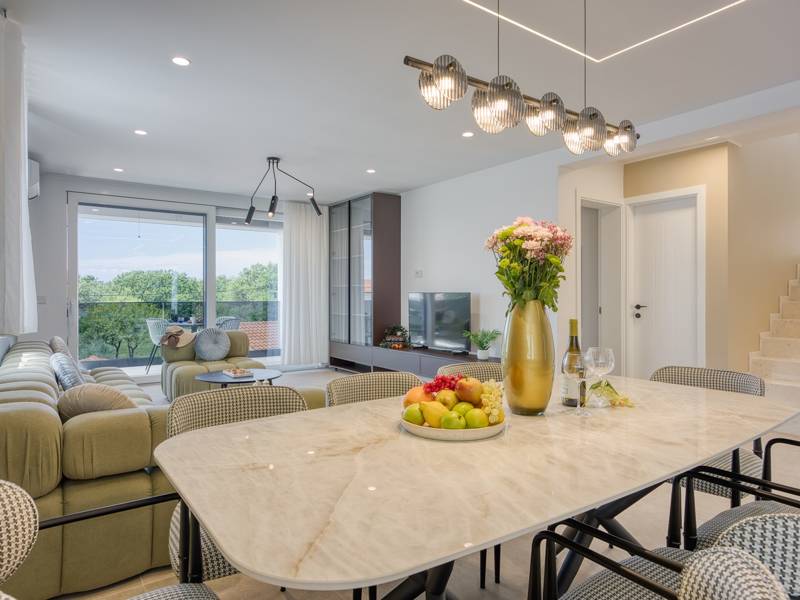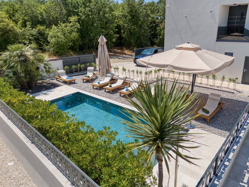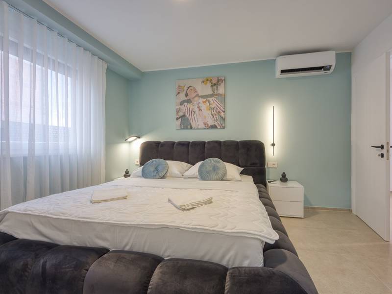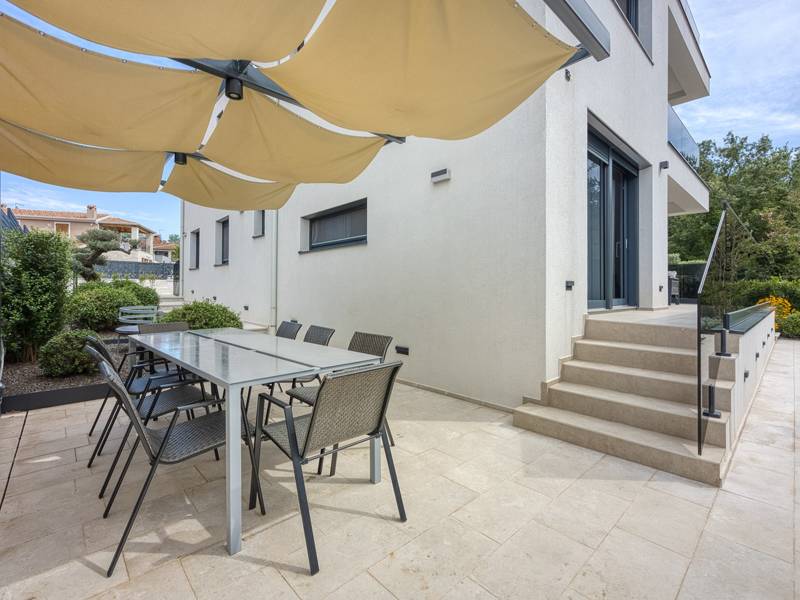 Located in a quiet area just 2 km from the beach and the center of Poreč, this luxurious and spacious holiday home is ideal for larger families or groups of friends seeking comfort, space, and privacy. The house consists of two separate living units spread over multiple floors and features a total of six bedrooms and six bathrooms, ensuring a comfortable and undisturbed stay.The first unit includes a living room, a fully equipped kitchen, and two bedrooms, one with an en-suite bathroom and the other with a bathroom adjacent to the room. The second unit spans two floors – on the first floor, there is a living room, kitchen, and two bedrooms, each with its own bathroom. The second floor features an additional living room and two bedrooms, one with an en-suite bathroom and the other with a bathroom adjacent to the room.The house is equipped with everything you need for a comfortable stay – every room is air-conditioned and has SAT-TV. Additionally, central heating ensures the house is cozy during the winter months. Free Wi-Fi, private parking, two fully equipped kitchens, and multiple living areas provide extra comfort.Enjoy the beautiful green garden, relax on the spacious ground-floor terrace with a grill, or unwind on the rooftop terrace with a whirlpool and stunning views. A true highlight is the 32 m2 private swimming pool with comfortable sun loungers – the perfect spot to sunbathe, refresh, and enjoy warm summer days.This property offers the perfect combination of tranquility, privacy, and proximity to the sea and all essential amenities – an ideal place for a carefree holiday, whether in summer or winter.Please note: Youth groups are not permitted in this accommodation.