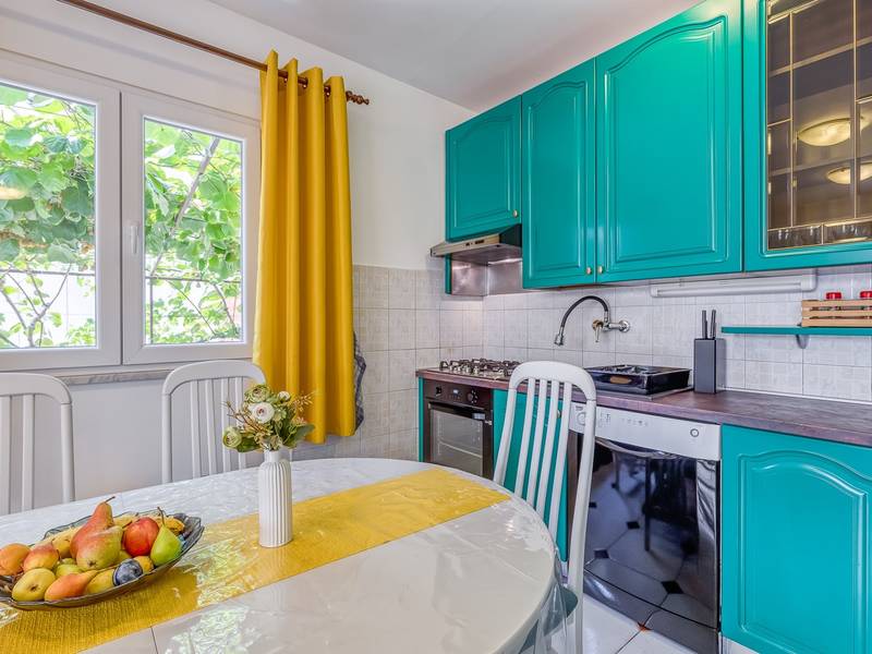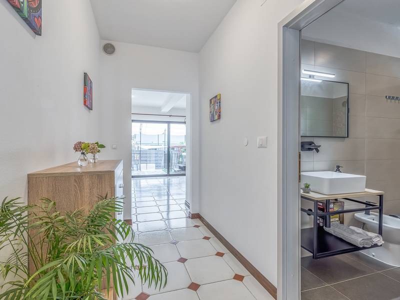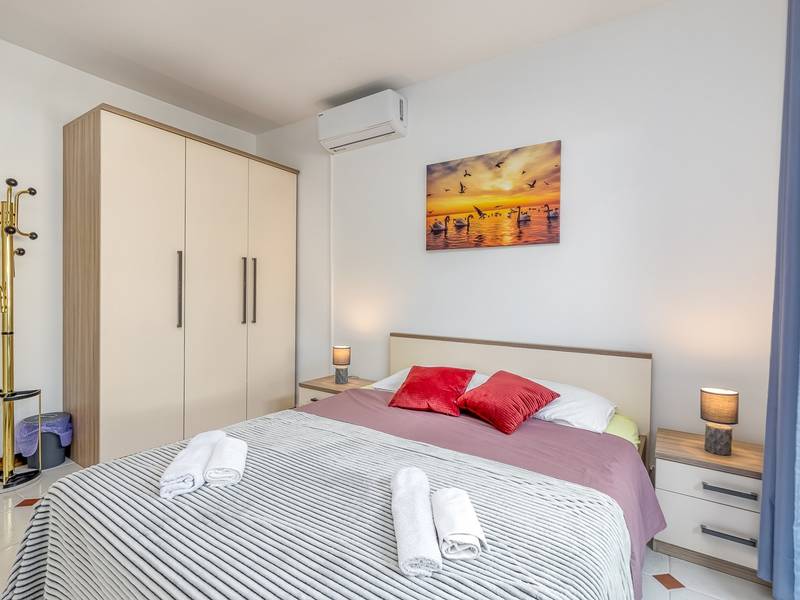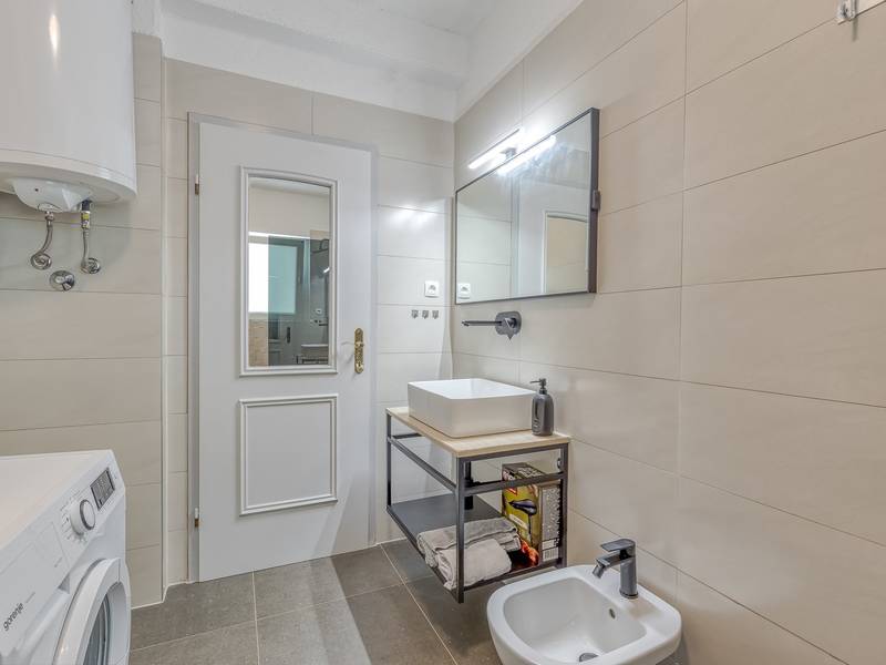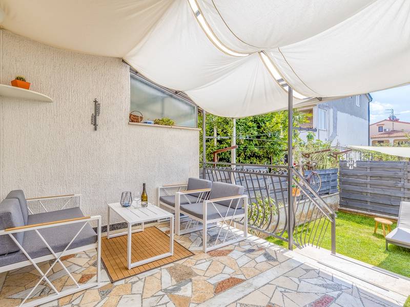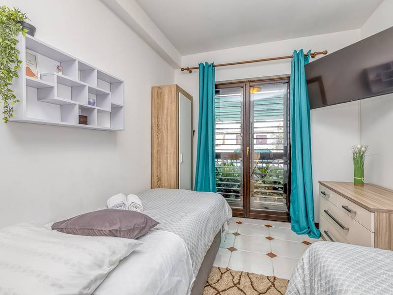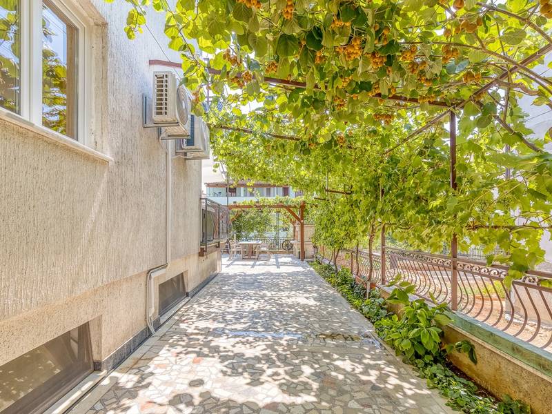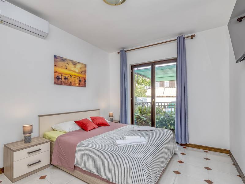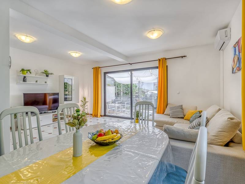 This beautifully decorated air-conditioned apartment of 80m2 with a rich content is located in a great location near the city center. It is only 700m from the sea. The apartment consists of two bedrooms, one with a double bed and one with two single beds, a bathroom with a shower, an equipped kitchen and a spacious living room. There is a sauna in the central part of the apartment and a Jacuzzi on the covered terrace, which you can enjoy after swimming in the sea and sunbathing on the beautiful beaches nearby. On warm summer evenings, you can hang out on the terrace while preparing food on the grill. The apartment offers a spacious yard where you can sunbathe on deckchairs or simply relax in socializing. In this location, there are excellent restaurants, wine shops and shopping centers nearby. You can walk to the city center and enjoy the many facilities that this beautiful city offers.