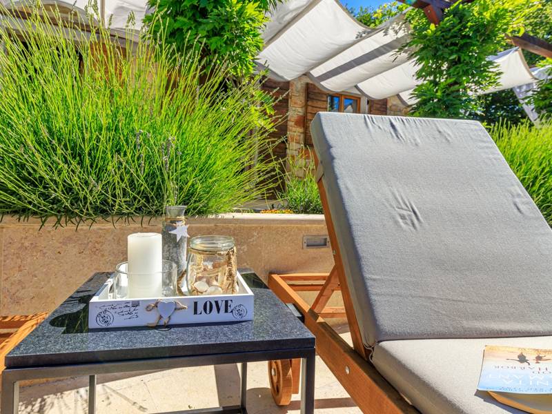 The wonderful villa Morena is located near the biggest city in Istria - Pula. It is ideal for a romantic holiday for two persons. The beautiful, well-kept fenced garden with a furnished terrace and a private swimming pool with sun loungers will leave you breathless. The house is nicely furnished, with many charming rustic details and consists of an open, equipped kitchen with a dining table and a cozy living room with a fireplace. There is also a bedroom with a canopy bed and a bathroom with a shower. In this villa, romance is guaranteed. Come to this wonderful holiday home and be tempted by the fragrant flowers in the garden and the charming atmosphere. Here you have the opportunity to make wonderful memories with your loved one and spend a relaxing holiday surrounded by beautiful Mediterranean nature.