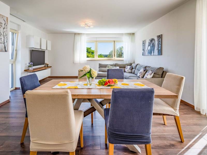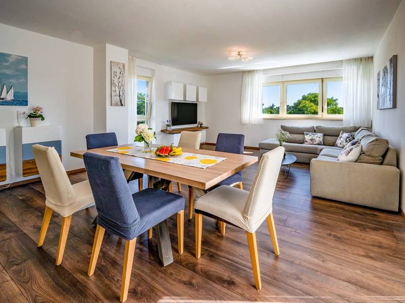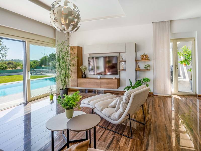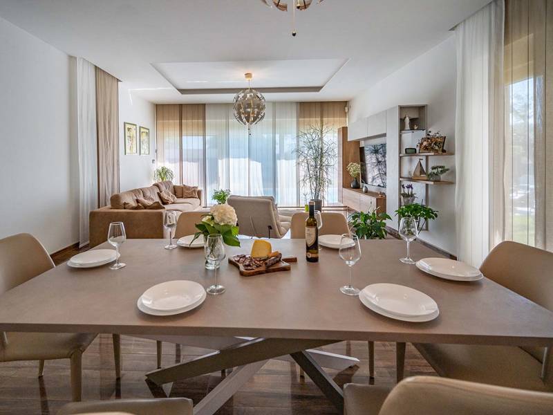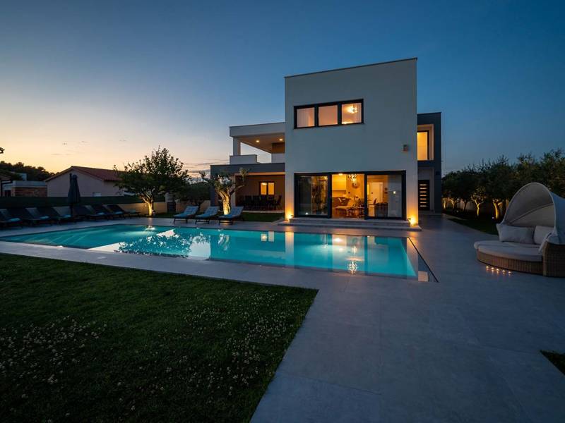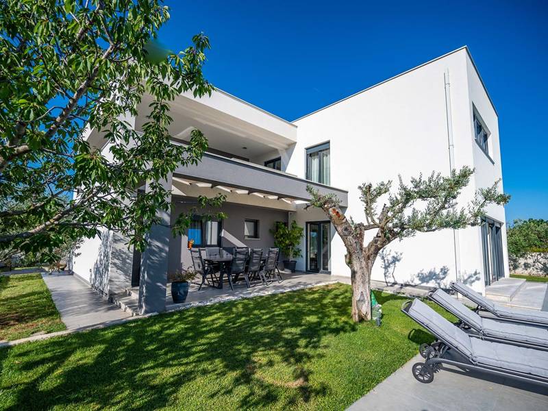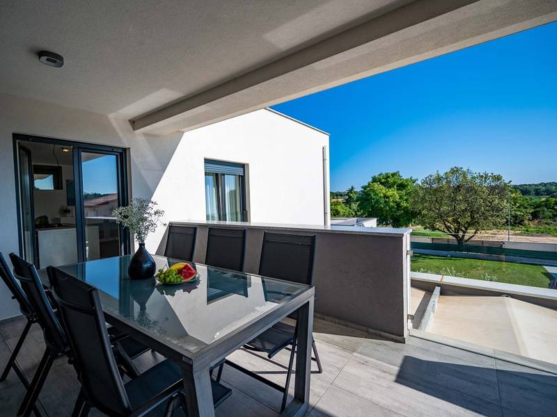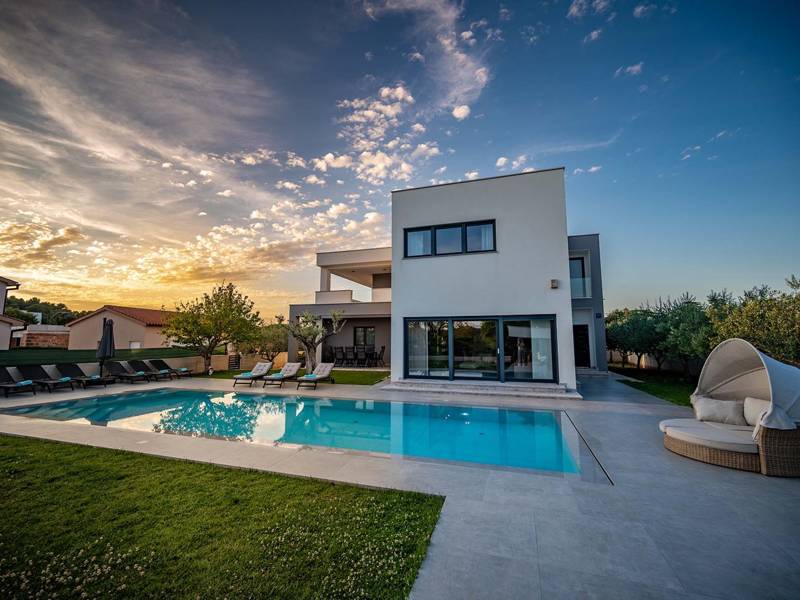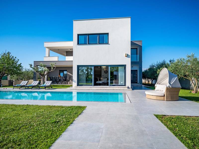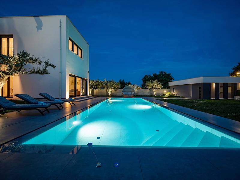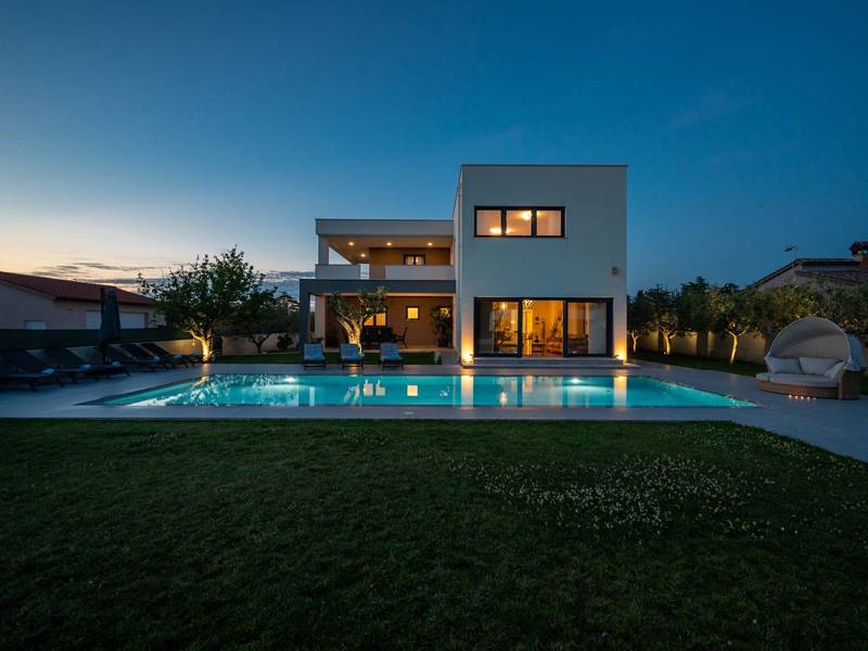 Villa Luen is a modern holiday home located at the entrance to Pula, the largest city on the Istrian peninsula with numerous historical landmarks. The house consists of two apartments, each on its own floor, connected by an internal staircase. This is particularly attractive for two families wishing to enjoy a holiday together while still maintaining their privacy. The house has a total of 6 bedrooms and, thanks to additional beds, can accommodate up to 11 people.The sleeping arrangements include three bedrooms with double beds, one bedroom with two single beds that can be joined into a double bed, and two bedrooms with one single bed each. Additional beds can be placed in any room, adapting to the guests' needs.While the upper floor is somewhat more casually furnished, the lower floor exudes elegance with elements like warm sand colors and refined furniture. Both floors share perfect proportions, spaciousness, and plenty of light. This detached villa with a swimming pool also has comfortable shaded terraces that offer peace and relaxation. It is far enough from the city's hustle and bustle, yet only a few minutes' drive from the city center and the nearest beach.Some of the properties don’t allow youth groups. If you are booking an accommodation facility as a group of young individuals, contact our agency before making the reservation in order to check whether the requested property allows your stay.