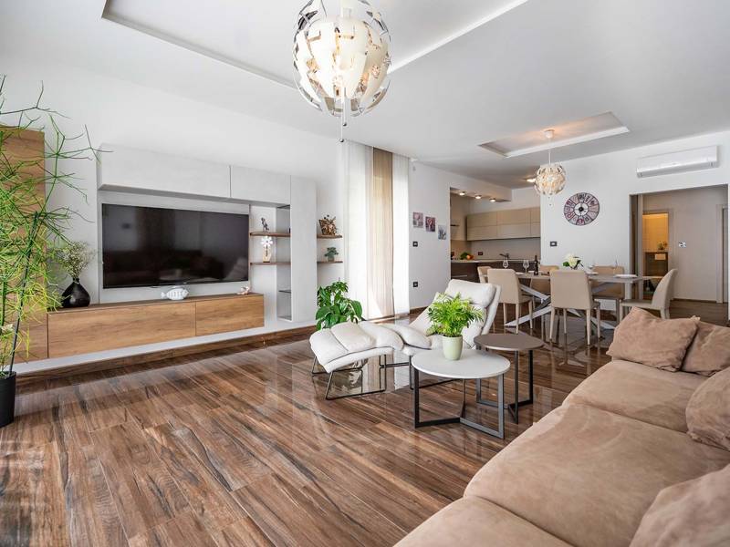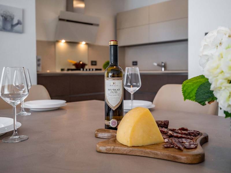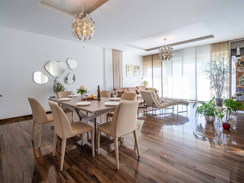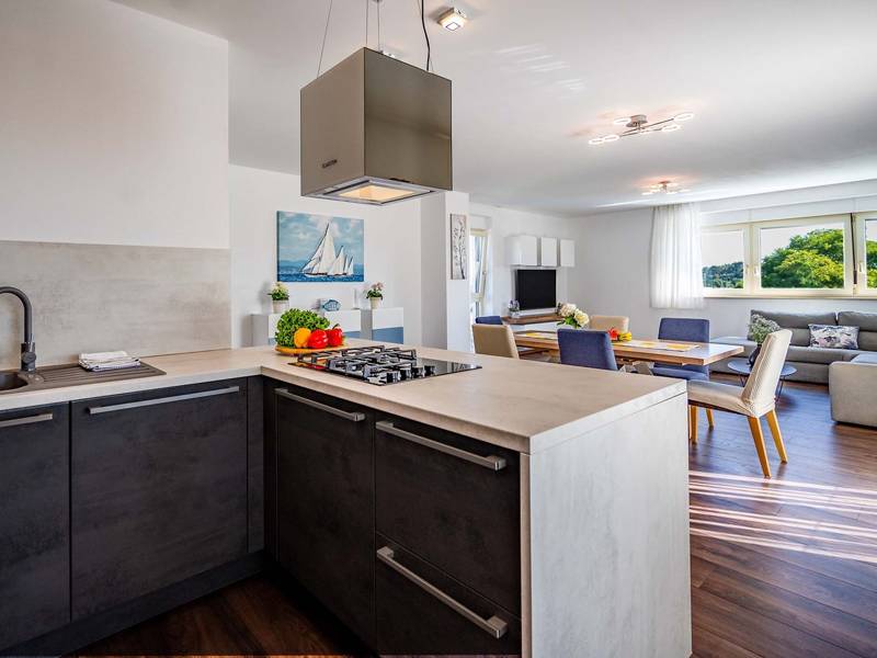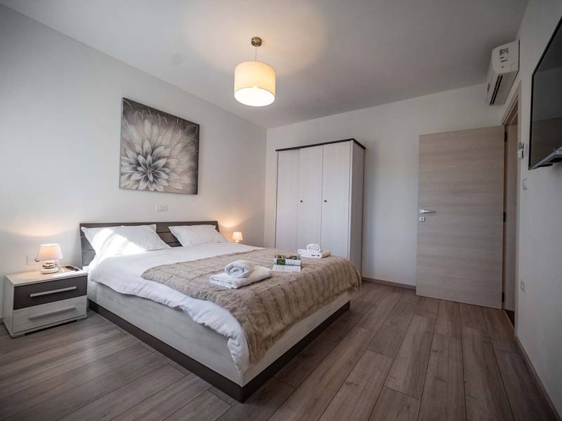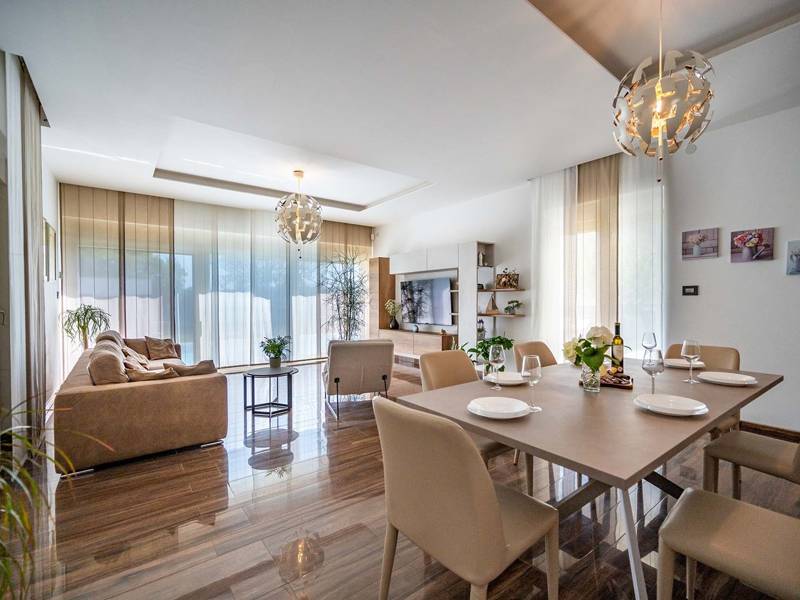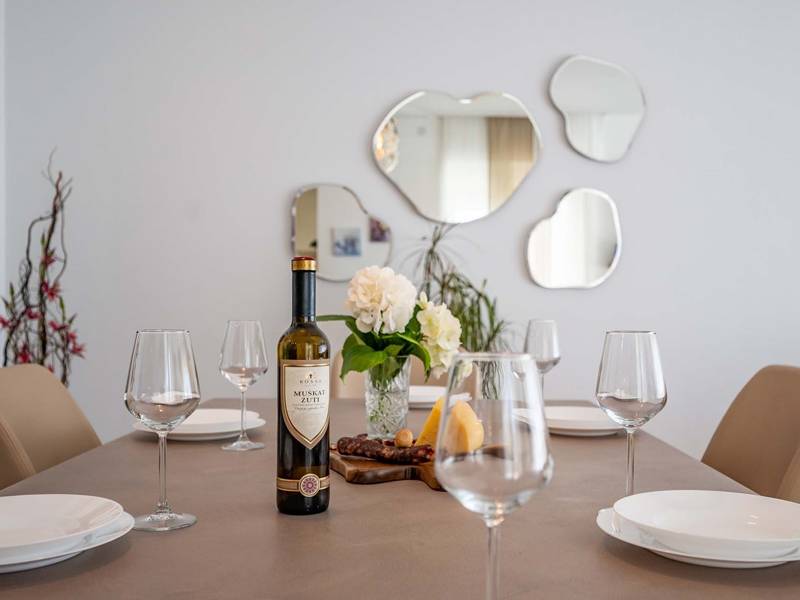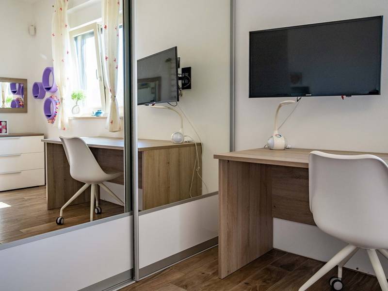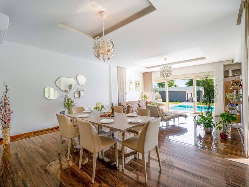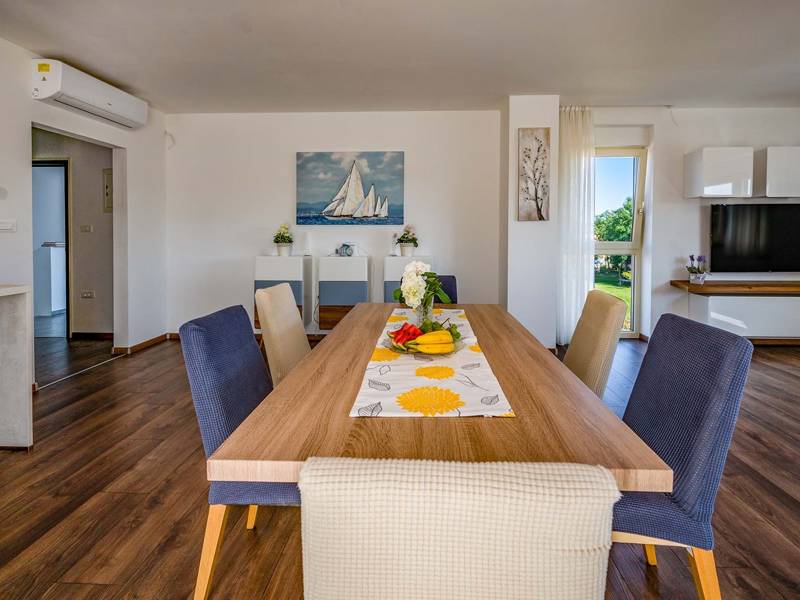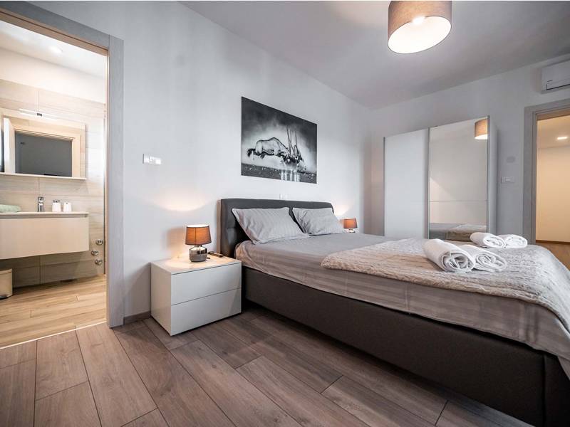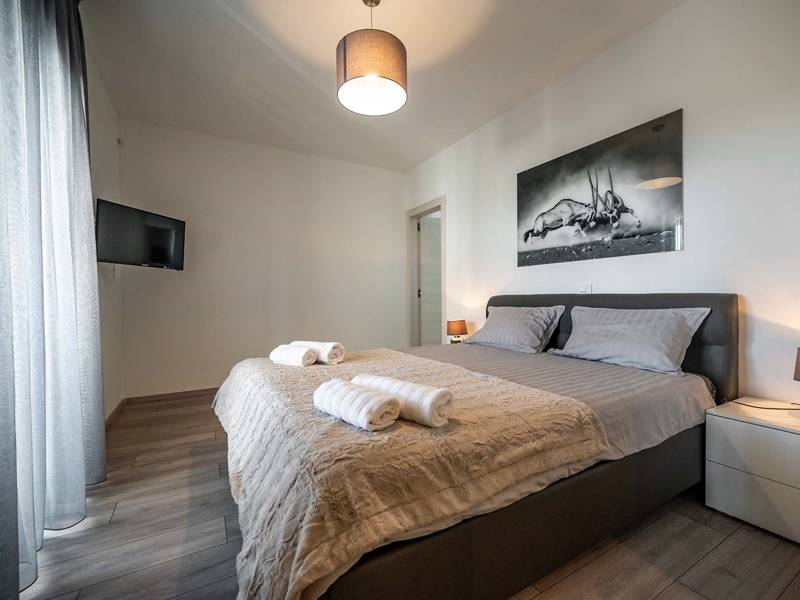 Villa Luen is a modern holiday home located at the entrance to Pula, the largest city on the Istrian peninsula with numerous historical landmarks. The house consists of two apartments, each on its own floor, connected by an internal staircase. This is particularly attractive for two families wishing to enjoy a holiday together while still maintaining their privacy. The house has a total of 6 bedrooms and, thanks to additional beds, can accommodate up to 11 people.The sleeping arrangements include three bedrooms with double beds, one bedroom with two single beds that can be joined into a double bed, and two bedrooms with one single bed each. Additional beds can be placed in any room, adapting to the guests' needs.While the upper floor is somewhat more casually furnished, the lower floor exudes elegance with elements like warm sand colors and refined furniture. Both floors share perfect proportions, spaciousness, and plenty of light. This detached villa with a swimming pool also has comfortable shaded terraces that offer peace and relaxation. It is far enough from the city's hustle and bustle, yet only a few minutes' drive from the city center and the nearest beach.Some of the properties don’t allow youth groups. If you are booking an accommodation facility as a group of young individuals, contact our agency before making the reservation in order to check whether the requested property allows your stay.
