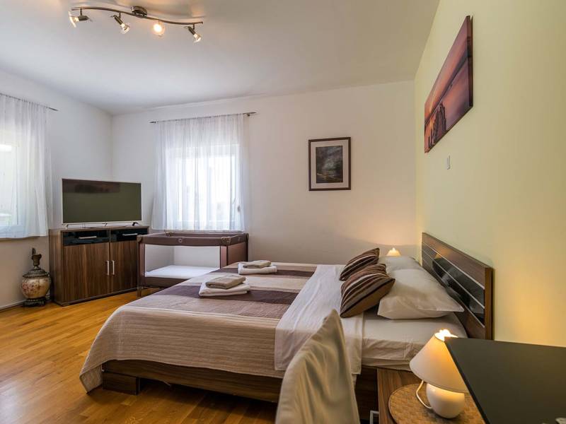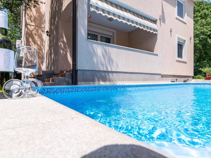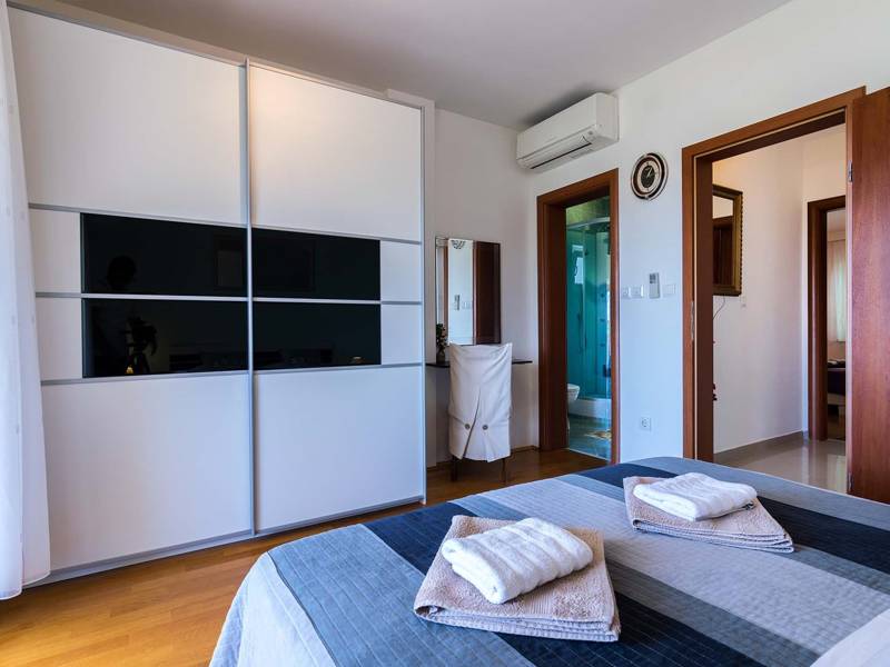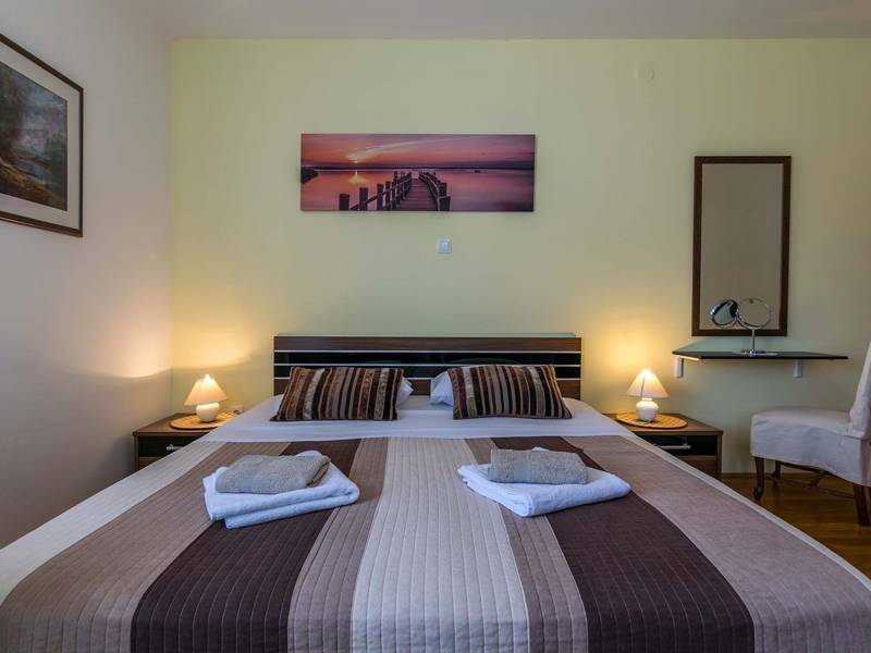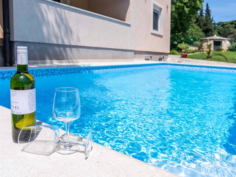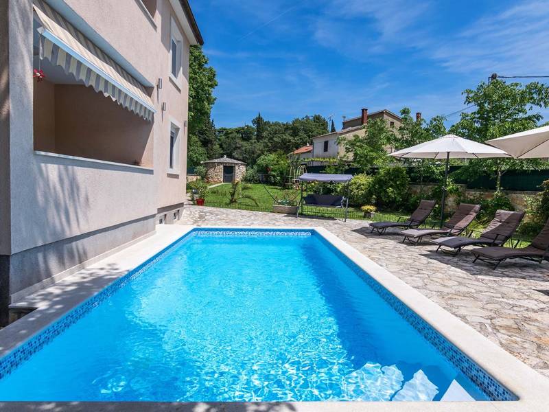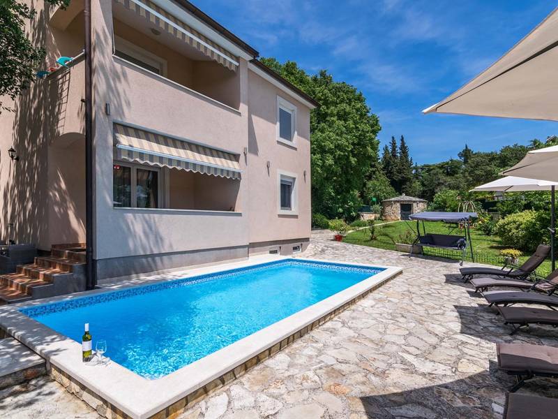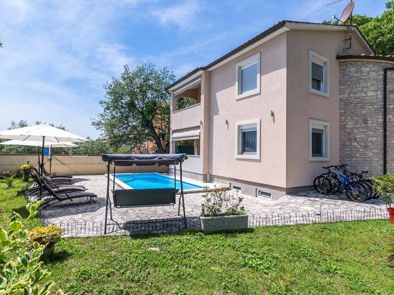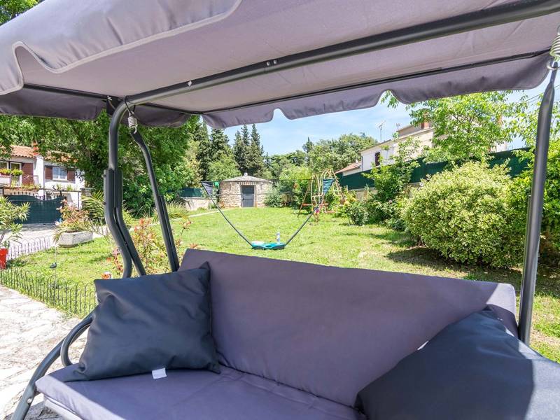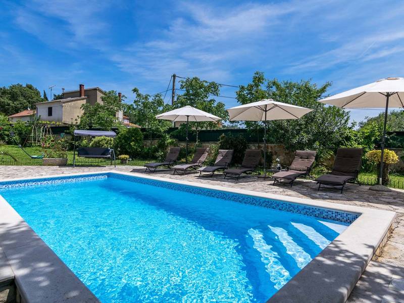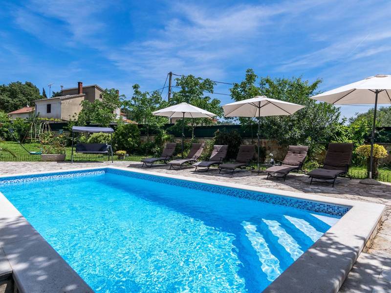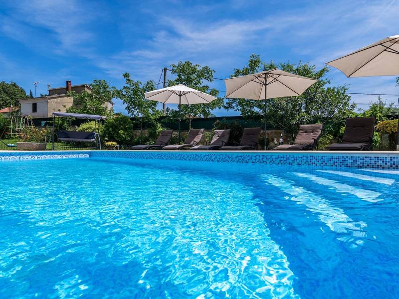 Indulge yourself with total relaxation and escape from a stressful everyday life in the privacy of your peaceful oasis – Villa Oaza. The house and the garden are suitable for a family holiday, with kid’s playground in the backyard, indoor and outdoor fireplace convenient for barbecue and heated pool that gives a choice of swimming even in colder months. Next to the sunny pool there are comfortable deck chairs and a garden rocking chair. An extra advantage of the house is a possibility of bringing your pets.The capacity of the house is ten people – eight within the four bedrooms and two on extra beds. The Villa also offers house fitness, so next to relaxation it offers an area for exercise. There is also a recreational venue right near the house with trim and bicycle paths – the Park forest Šijanska šuma.Some of the properties don’t allow youth groups. If you are booking an accommodation facility as a group of young individuals, contact our agency before making the reservation in order to check whether the requested property allows your stay.