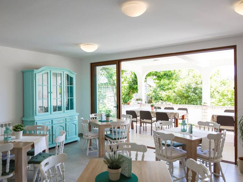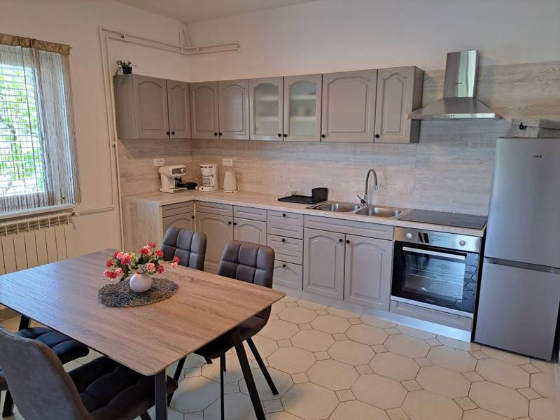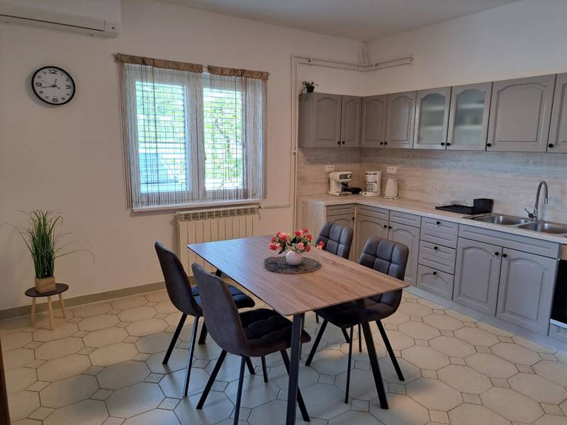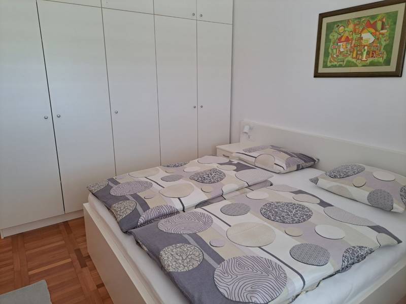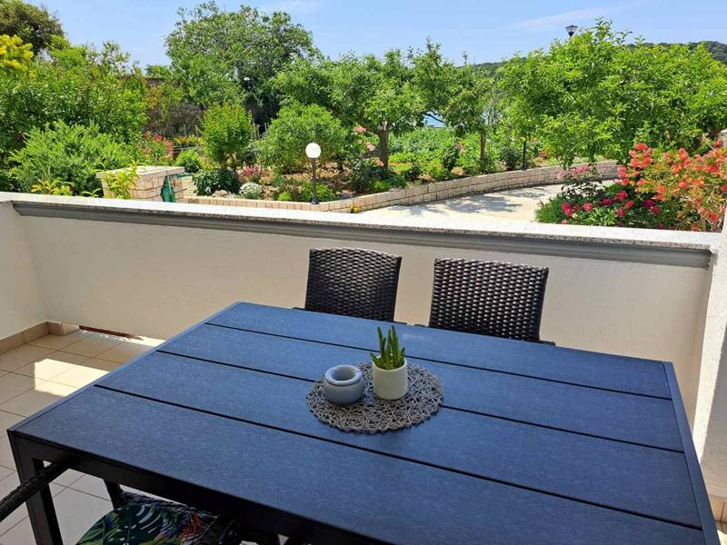 The comfortable apartment Vidas A7 is located on the coast/beach, north of the town of Rab on the island of the same name, Palit. Apartment Vidas A7 is located on the second floor of the apartment complex and can accommodate 2 - 4 people.The apartment consists of one bedroom with a double bed, a bathroom with a shower, a living room with a sofa bed. In the main part there is a well-equipped kitchen with kitchen utensils, a dishwasher and all necessary cooking appliances. From the apartment you have access to a private balcony where you can find a seating area. This is the perfect place to enjoy warm summer evenings with your family or friends.Private parking is available within the premises. A baby cot is available on request. Breakfast is available on request at the facility for an additional fee.