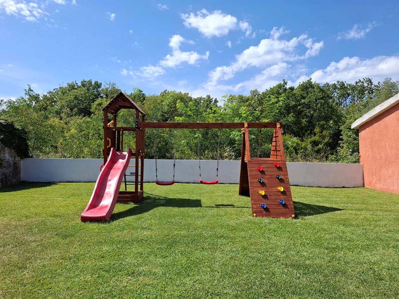 Find your true Istrian escape in a forest retreat away from all the stress and crowds at Villa Prisedi. This well-maintained property is situated in absolute solitude, in the middle of the woods. Picture yourself swimming in a private pool with only your closest ones around. The pool is not the only fun feature of the house. For the young and the young at heart, there is a swing in the garden, a dartboard, and a table tennis area. And of course, a barbecue, because what kind of vacation would it be otherwise? Four comfortable bedrooms provide accommodation for seven to a maximum of eight people in this spacious house. The downstairs layout is designed for socializing and includes an equipped kitchen, indoor and outdoor dining areas, and a living room. Although this is a private area, the surroundings of Villa Prisedi have much to offer, and the good thing is that everything is quite close to the villa. The seaside is less than one kilometer away; there is a possibility of renting a boat, visiting a diving center, going to an adrenaline park, or riding horses at a nearby ranch. You’re also just a short drive away from several attractive towns that offer interesting events throughout the year and have many restaurants and taverns with good food, drinks, and service.