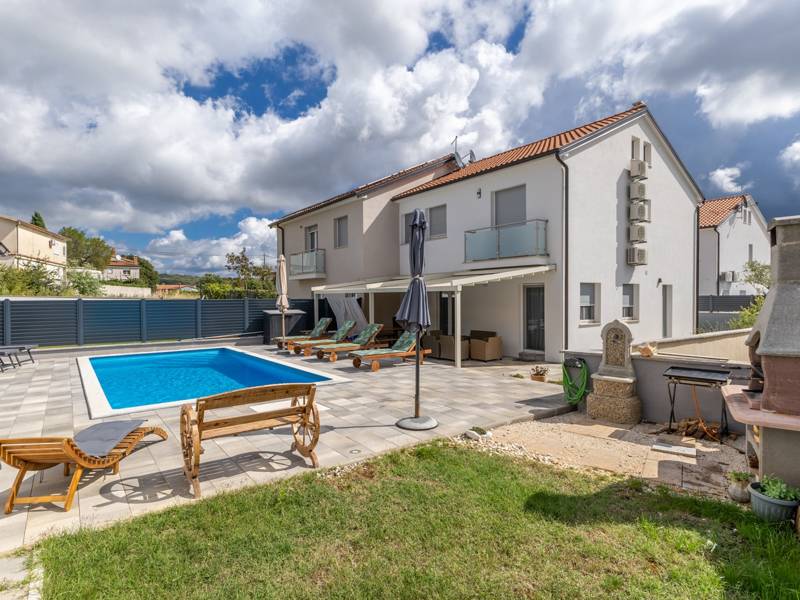 This beautiful house with a swimming pool is located in the quiet and idyllic village of Rovinjsko selo, a perfect place to relax and enjoy privacy. Given that it was newly built this year, everything in it is modernly decorated and adapted to high standards of comfort. Villa Manda offers incredible enjoyment in the summer months thanks to its wonderful private pool. Enjoy refreshing moments in the water while you relax on the sun loungers and enjoy the spectacular view of the surrounding landscape. Inside the house, you will find spacious and elegantly decorated spaces that guarantee a pleasant stay. It consists of four comfortable bedrooms, each with its own bathroom, which allows complete privacy for guests. All bathrooms are modernly equipped and provide complete comfort and luxury.Villa Manda is fully air-conditioned, which means that you will feel comfortable at any time of the day or night, regardless of the outside temperature. In addition, the proximity to the beautiful town of Rovinj makes this property even more desirable. Rovinj is known for its beauty, rich history and beautiful beaches, all of which will be at your fingertips. For guests who come with their own transport, the house offers a private parking space, which is an excellent convenience, especially during the tourist season. This house with a swimming pool in the village of Rovinj is an ideal place for a family vacation or a vacation with friends. Here you will find the perfect combination of modern style, comfort and proximity to all the attractions that this beautiful part of Istria has to offer.