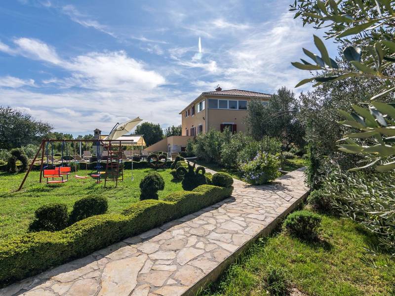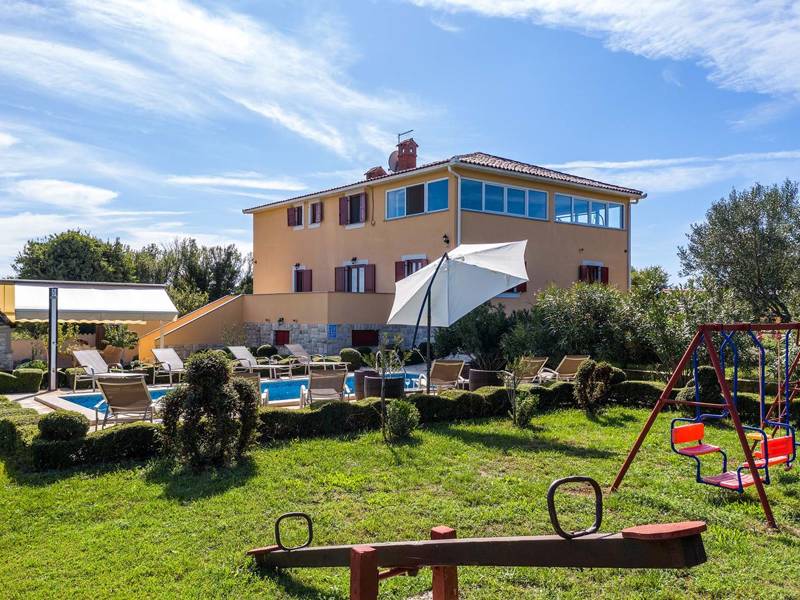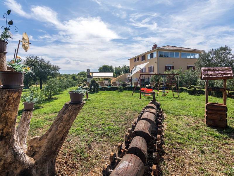 The charming house Villa Divina presents a perfect mixture of modern and rustic. Its location offers a perfect balance of privacy, peacefulness and enjoyment away from a city rush and yet well known coastal tourist destinations are within an easy reach. The house accommodates up to ten guests and has five bedrooms, on top of the open-space living room with a kitchen and a dining room, all stylishly decorated. Spend every morning drinking coffee in villa's well maintained garden, while choosing among many seating areas to find the perfect spot for you. Large property, privacy it provides, spacious interior, comfortable furnishing, sauna and a hot tub, entertainment possibilities for both kids and adults, sunny swimming pool, beautiful garden… are just some of the benefits of Villa Divina.Some of the properties don’t allow youth groups. If you are booking an accommodation facility as a group of young individuals, contact our agency before making the reservation in order to check whether the requested property allows your stay.