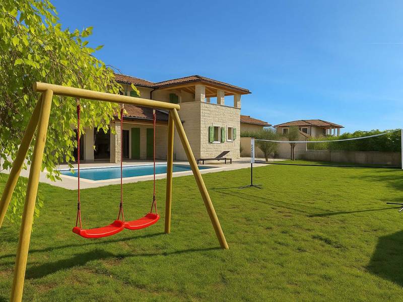 Located in the peaceful village of Otočani near Žminj, the new Villa Lunistra offers 220 m2 of contemporary comfort and complete privacy for a relaxing holiday in Istria. Designed for up to eight guests, it features a spacious open-plan living room with a fully equipped kitchen and dining area that extends to a covered terrace and a large enclosed garden of 1,060 m2. At the heart of the property is a 34 m2 pool surrounded by a sun deck with comfortable loungers, perfect for long summer days. Thanks to its excellent location, guests can easily explore the Istrian coast—picturesque Rovinj is only 20 km away, Pula 30 km, and Poreč 40 km—while still enjoying the peace and privacy of this modern villa.If you are a younger group of guests, please contact the owner in advance, as some owners do not accept younger groups.