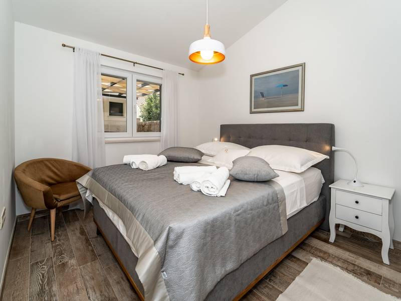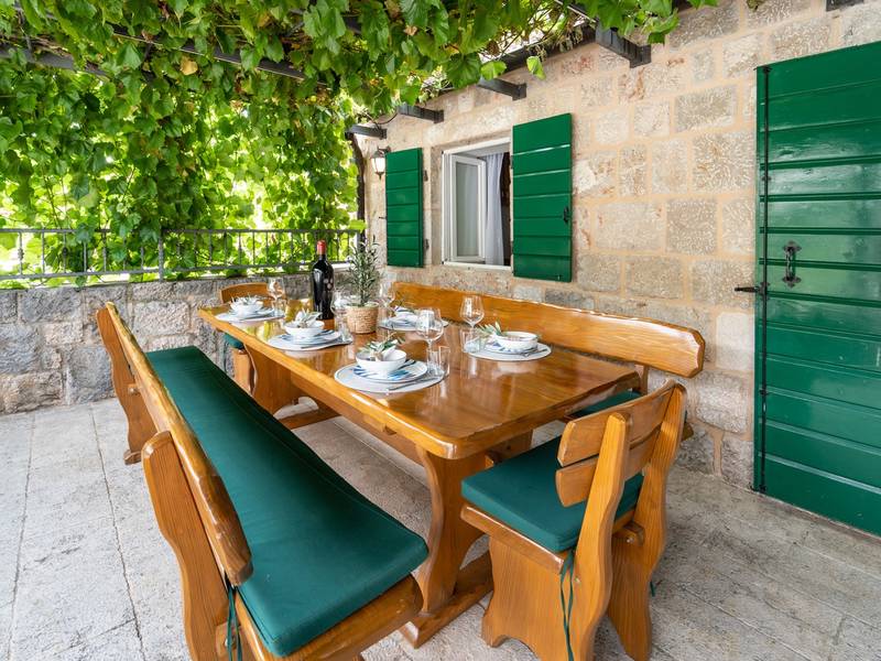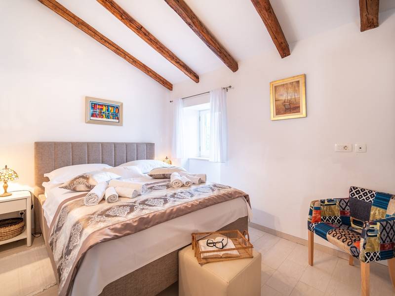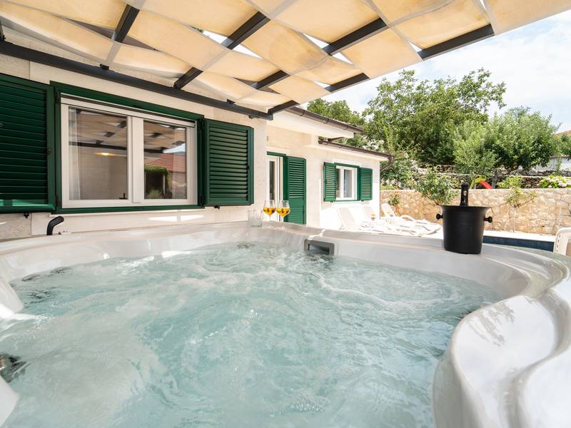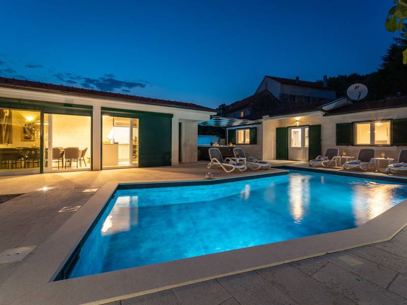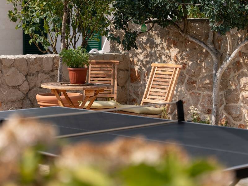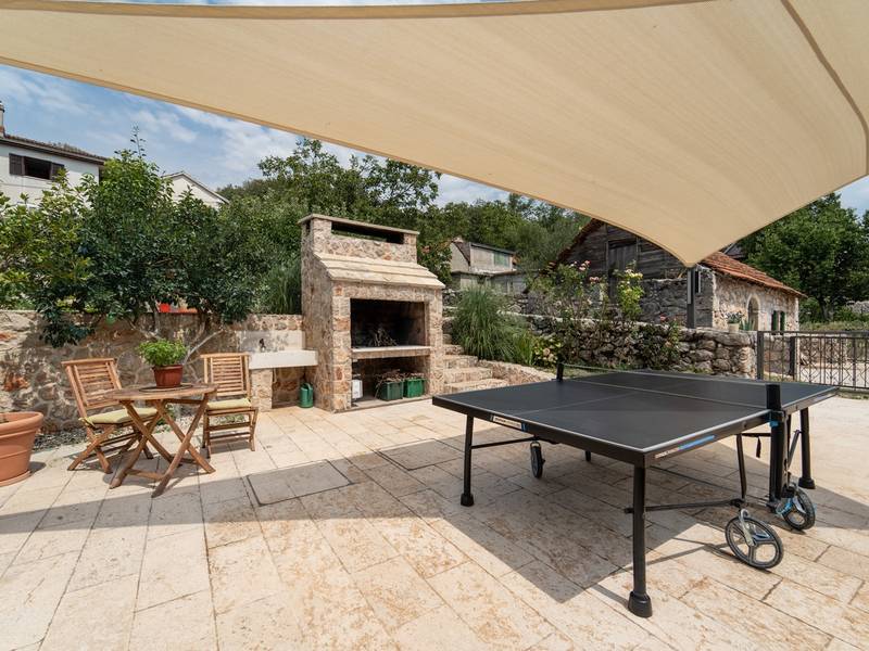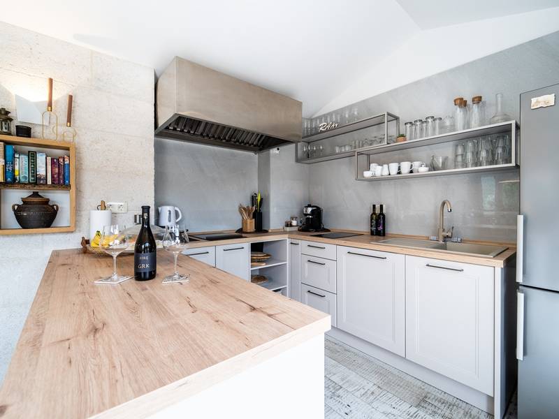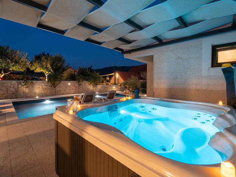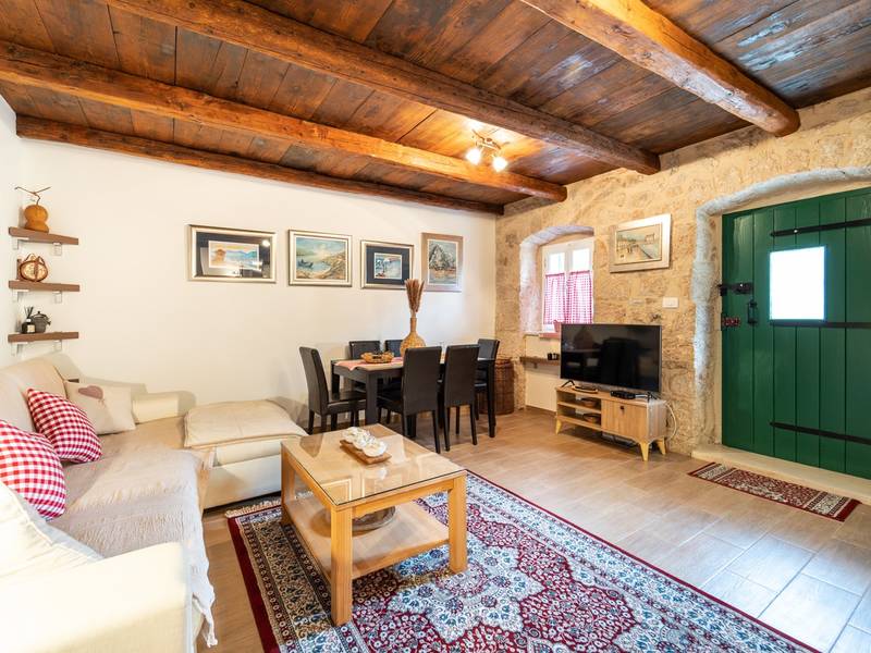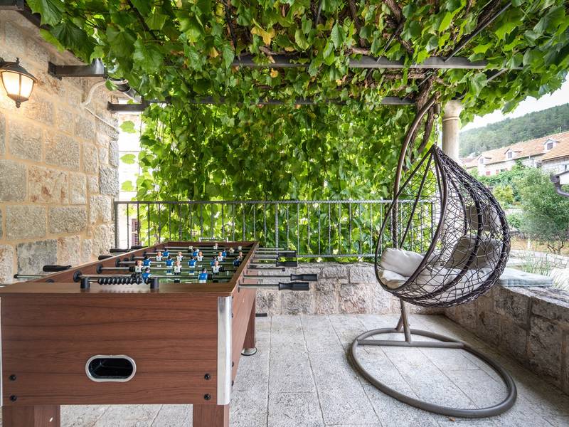 Nestled in the charming village of Slivno, Imotski, Villa Aurora offers a perfect getaway in the heart of Dalmatia. This beautifully renovated traditional stone villa, built in 1911, features a private heated 28 sqm pool with hydromassage, a Turkish sauna, and a Hot tub for ultimate relaxation. Stylishly designed and fully equipped for the modern guest, this villa warmly welcomes your four-legged family members, too! With 5 bedrooms organised in two connected units, it’s ideal for families and groups. Just 13 km from Imotski, 20 km from Makarska, 44 km from Omiš, and 65 km from Split, the region’s capital.- Two Gorgeous Houses offered exclusively for you:- Main stone House: - On the Air-conditioned ground floor, you’ll find a fully equipped modern kitchen, a dining area, and a cosy living room with a TV and a fireplace, alongside a Family bathroom with a shower and washing machine and a Turkish sauna for ultimate relaxation. - A charming ˝tavern˝ style room is also located on this level, traditionally decorated and stocked with premium local wines for your enjoyment. - The first floor features Bedroom No1 (11sqm) with a double bed, Bedroom No2 (8sqm) with a double bed and single bunk bed (perfect for kids), Bedroom No3 (6sqm) with a single bed. From the stone house, you have a lovely naturally shaded outdoor terrace with a wooden dining table, a table soccer and a swinging egg chair overlooking the pool area— perfect for savouring those warm summer evenings. - Pool Cottage: - This new part of the house offers an air-conditioned living/dining area and a fully equipped kitchen with direct access to the pool. There are Bedrooms No. 4 and No. 5, both with double beds, one family bathroom with a shower and a washing machine. - A covered area with a Hot-Tub (Whirlpool) - There is also an air-conditioned and fully equipped Summer kitchen with a dining table for 10 people with sliding glass doors toward the pool, and there is a separate toilet. A spacious, grassy garden connects the properties, providing a great spot for afternoon coffee or playtime with your pet. Enjoy fresh fruit from the garden or fire up the traditional stone grill for a delicious barbecue, and have fun on an outdoor table tennis table. The outdoor terraces are ideal for socialising and entertaining. Adjacent to it, the stunning outdoor pool awaits, complete with a jacuzzi for ultimate relaxation.Relaxation and EntertainmentVilla Aurora doubles as a spa oasis, featuring:- A Turkish sauna- A heated outdoor pool- A rejuvenating jacuzzi