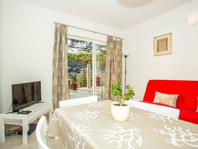 Apartments Robert are located in the village of Brna, on Korcula Island. Two comfortable and modernly furnished apartments located only 10 meters from the sea offer everything you might need for a pleasant vacation at the beach. All apartments have a fully equipped kitchen, free Wifi, air conditioning and a furnished balcony or terrace with a beautiful view of the Adriatic sea. Private parking is available in front of the house. This cozy modern apartment is located on the second floor of the house and offers everything four persons might need for a wonderful vacation by the sea. It consists of a and a bedroom with a double bed, a bathroom with a shower, a fully equipped kitchen and a living room with a dining area, satellite TV and a sofa bed for two persons. The living room has an exit to a spacious furnished balcony which offers a beautiful sea view and provides the perfect place to relax during the hot summer evenings. Welcome to Brna on the Island of Korcula and to Apartments Robert, where you will surely spend an unforgettable holiday with your loved ones!
