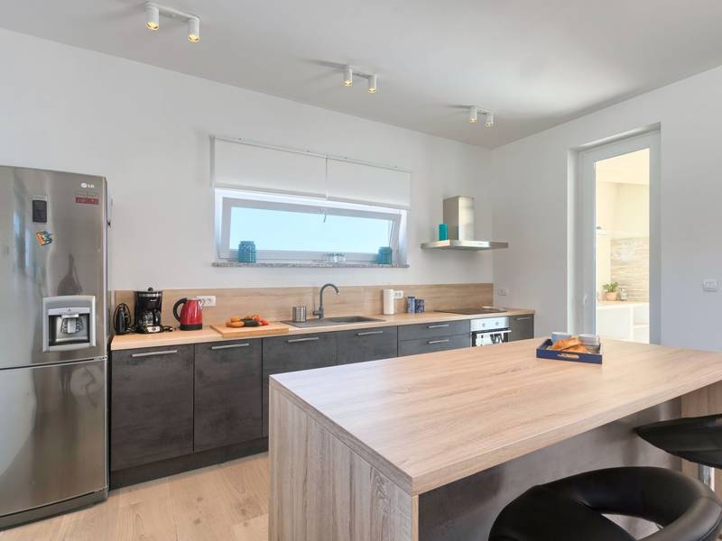 Villa Aura is a contemporary one-storey home ideally located in Stinjan, near Pula. Just 20 meters from the villa, guests can find a restaurant and a sports center equipped with a football field and tennis court. Stinjan is celebrated for its beautiful beaches ranging from secluded, tranquil bays to popular stretches with lively cafes and beach bars, with the nearest beach only 1 km away.This property offers a private, enclosed 720 sqm space featuring a 32 sqm saltwater swimming pool. The outdoor area is designed for relaxation and entertainment, including a sundeck with sun loungers, a covered terrace with a dining table and a gas barbecue, and comfortable lounge furniture. There are also three parking spaces available on site.The 140 sqm holiday home accommodates 4-6 persons and includes a fully equipped kitchen, dining room, and living room in a singular open space with large glass windows and direct access to the inviting outdoor area. It houses two comfortable bedrooms, each with a double bed, en-suite bathroom with shower/toilet, and direct terrace and swimming pool access. Additionally, there is a separate toilet in the hall. The entire house is air-conditioned, and each bedroom is fitted with satellite TV.This luxurious villa combines modern amenities and spectacular outdoor living to provide the ultimate retreat for relaxation and enjoyment in the heart of Stinjan.NOTE: The pool can be used in the period 1st May - 1st October.NOTE: Youth groups are not allowed
