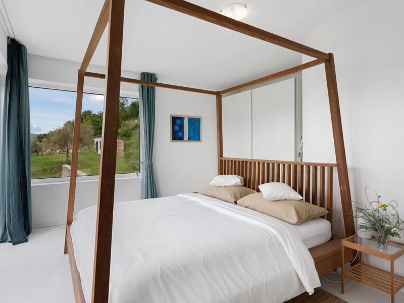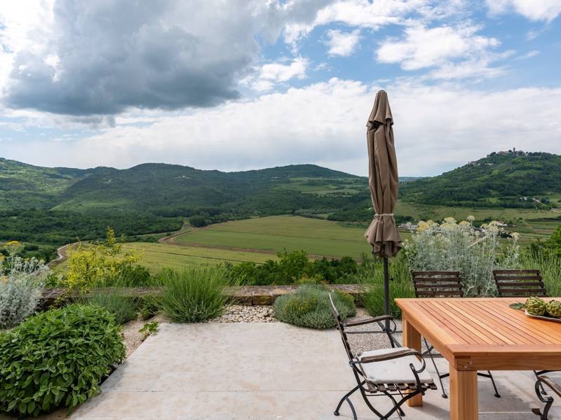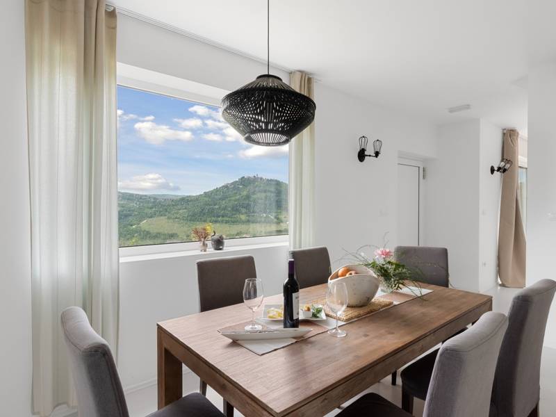 Treat yourself and your loved ones to an incredible experience of central Istria by staying in the beautiful Villa Majestic Eye located on a hill near Motovun. The villa can accommodate up to 4 + 2 people, making it the perfect choice for a small family or a group of friends looking for an escape from the city bustle.The modern interior of this fully air-conditioned villa is truly breathtaking. On the first floor of the house, you will find two beautifully decorated bedrooms with double beds and adjoined bathrooms with walk-in showers. Both bedrooms have an incredible view of the surrounding nature, which will certainly enrich your stay. On the ground floor of the villa, there is a fully equipped kitchen with a dining table. There is also a charming living room with direct access to the courtyard, for carefree evening spent in pleasant company. In the beautifully decorated courtyard of the villa, the first thing you will notice is the view of the town of Motovun, which follows you wherever you stand. A charcoal grill is available for you to prepare delicious meals that you can serve on the outdoor dining table. The highlight of the villa is the infinity pool with adjoined sunbeds, for all-day enjoyment in the warm Mediterranean sun.