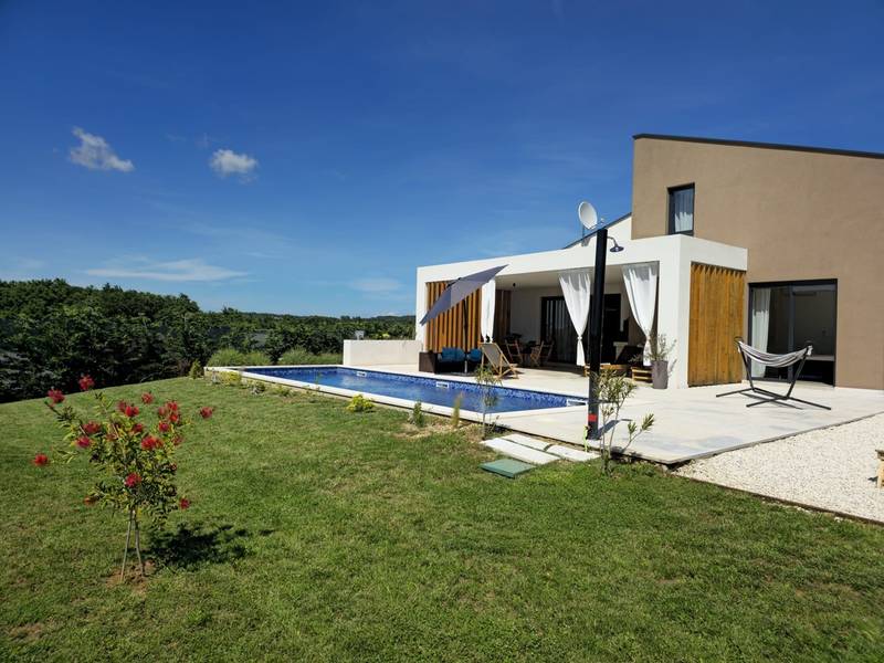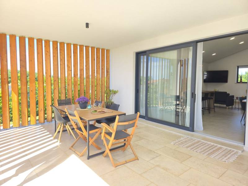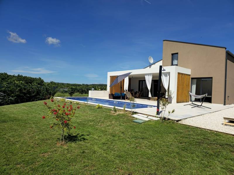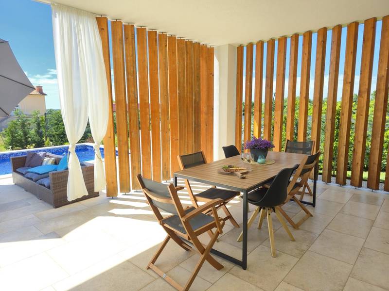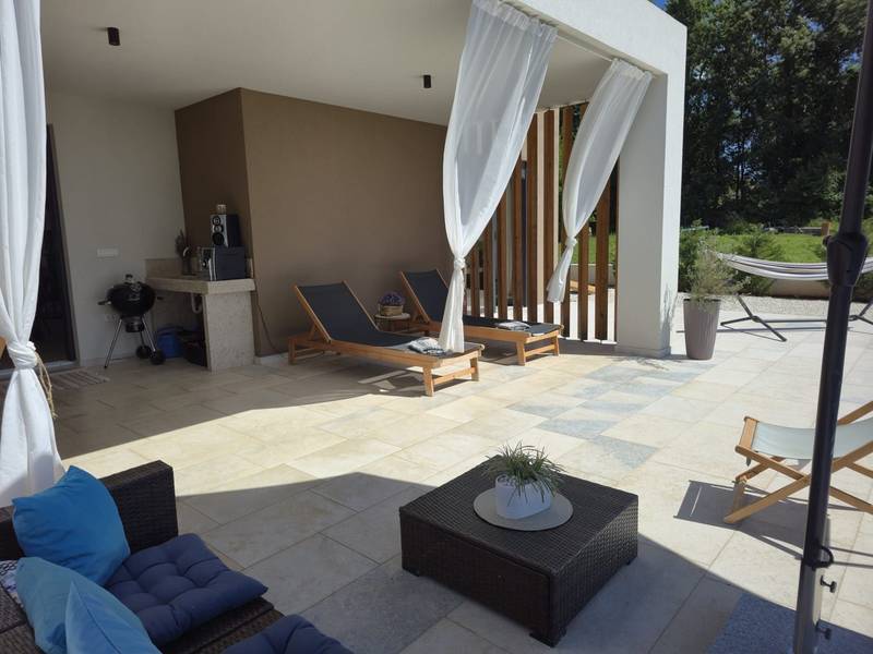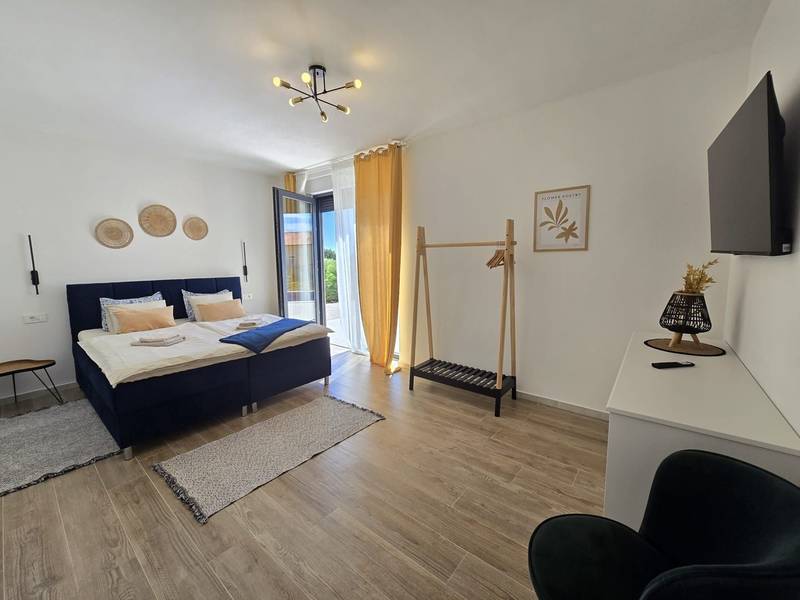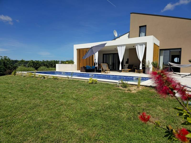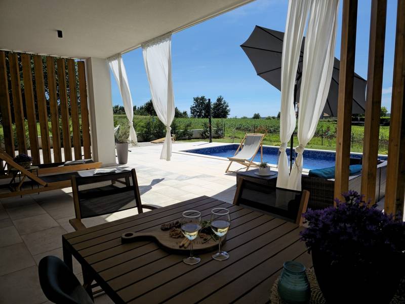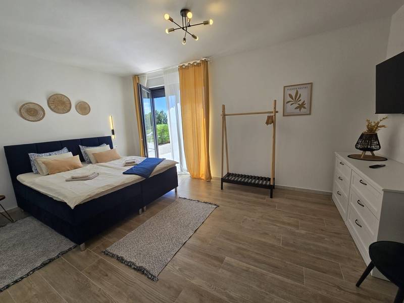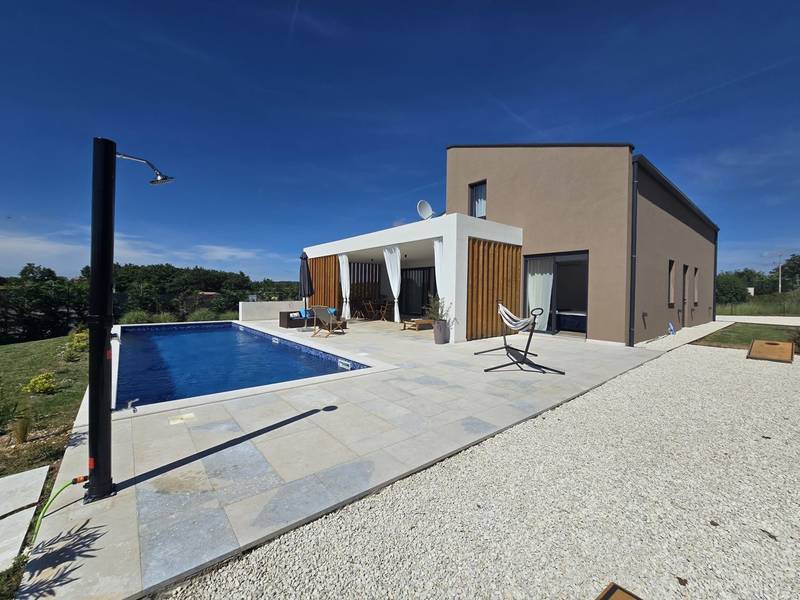 Villa Arija is a modern holiday home designed for guests who appreciate comfort, privacy, and a high standard of accommodation. Situated on a spacious 987 m2 plot, the villa offers 207 m2 of thoughtfully arranged living space and can accommodate up to 8 guests.The property features a private 35 m2 swimming pool, three fully equipped bedrooms with en-suite bathrooms, and a fourth room designed as a game room (PlayStation, TV, darts, foosball, stationary bike) with two additional beds, providing both extra sleeping space and entertainment. This multifunctional room makes the villa particularly suitable for families, kids, or groups seeking both relaxation and leisure activities.The ground floor consists of a bright open-plan living area with comfortable seating, a fully equipped kitchen, and a spacious dining area. Two bedrooms with king-size beds and en-suite bathrooms are also located on this level, along with a guest toilet and a laundry area.On the upper floor, there is one additional bedroom with a private bathroom, as well as the game room with two extra beds. All bedrooms are equipped with air conditioning and TVs.The outdoor area is one of the highlights of Villa Arija. The garden features a private swimming pool with sun loungers, while the covered dining area with a charcoal barbecue is ideal for relaxed meals and gatherings.The villa offers private parking for up to four vehicles and is conveniently located on the edge of a village, within walking distance of a grocery store, bar, and restaurant.Villa Arija is an excellent choice for families or groups looking for a private, well-equipped property with quality outdoor space and additional entertainment options.Max 2 pets are welcome free of charge.