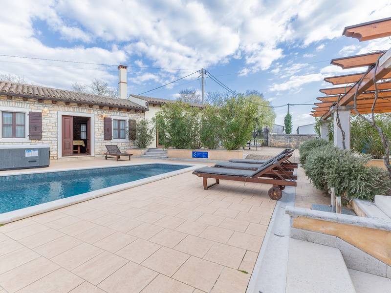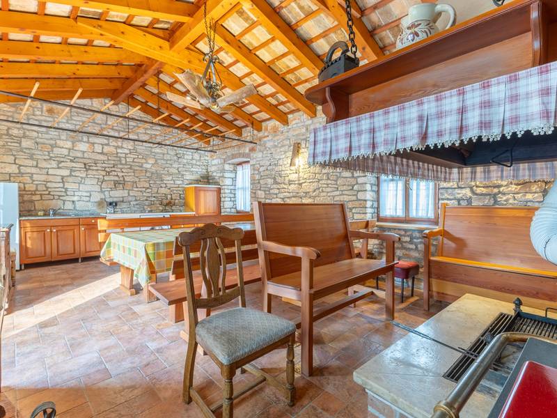 This charming stone house, built back in 1870, perfectly combines tradition and modern comfort thanks to a careful renovation in 2009. It offers accommodation for up to 10 guests, providing a spacious and pleasant stay in an authentic setting. The house has four bedrooms, several bathrooms and a modernly equipped kitchen that includes all the necessary appliances for a carefree stay. Of particular value is the outdoor area with a fenced natural plot of 400 m2, where there is a 24 m2 swimming pool available during the warmer months, as well as numerous facilities for relaxation and entertainment such as a barbecue, trampoline and sports equipment. Guests also have access to covered terraces, ideal for enjoying the fresh air. The house is equipped with internet, air conditioning, a fireplace and numerous multimedia facilities, making it the perfect choice for a family vacation or a get-together with friends.
