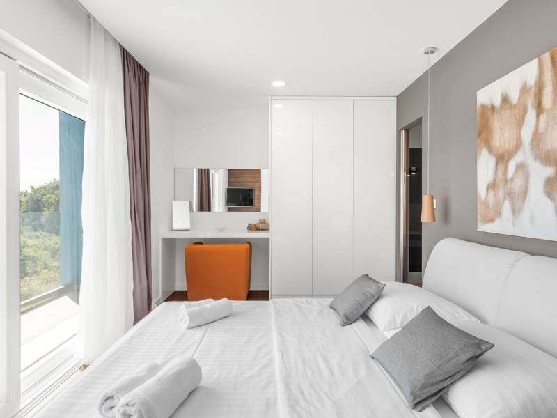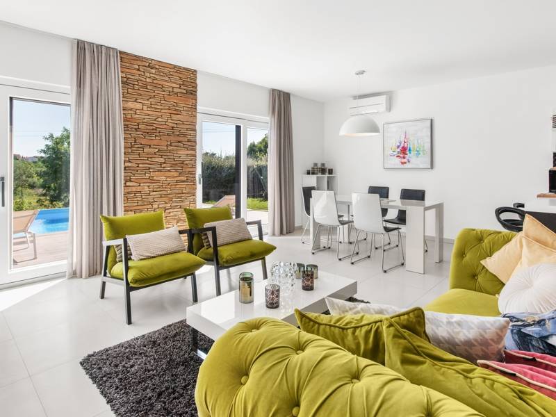 A perfect vacation awaits you with a stay in the wonderful Villa Chic, located in the quiet village of Valica, not far from Umag. The villa offers complete privacy and comfort and is an excellent choice for a getaway for a small family or a group of friends of up to 4 people. This fully air-conditioned villa has been decorated to the last detail to provide the comfort of your own home. At your disposal, there are two bedrooms with double beds, each with its own en-suite bathroom with a walk-in shower. The spacious ground floor of the house offers a fully equipped modern kitchen for preparing delicious dishes that you can serve on the adjoining dining table. There is also a comfortable living room with glass doors that allow direct access to the yard and unhindered passage of daylight. In the charming courtyard, the main accent is certainly the swimming pool with the accompanying deckchairs, for all-day enjoyment in the warm Mediterranean sun. There is a gas grill at your disposal, as well as an outdoor lounge area, for drinking morning coffee in the peace and quiet that surrounds you.