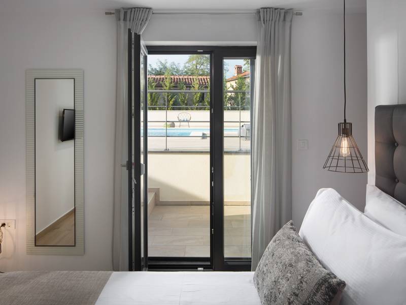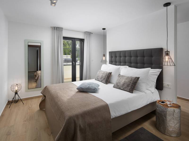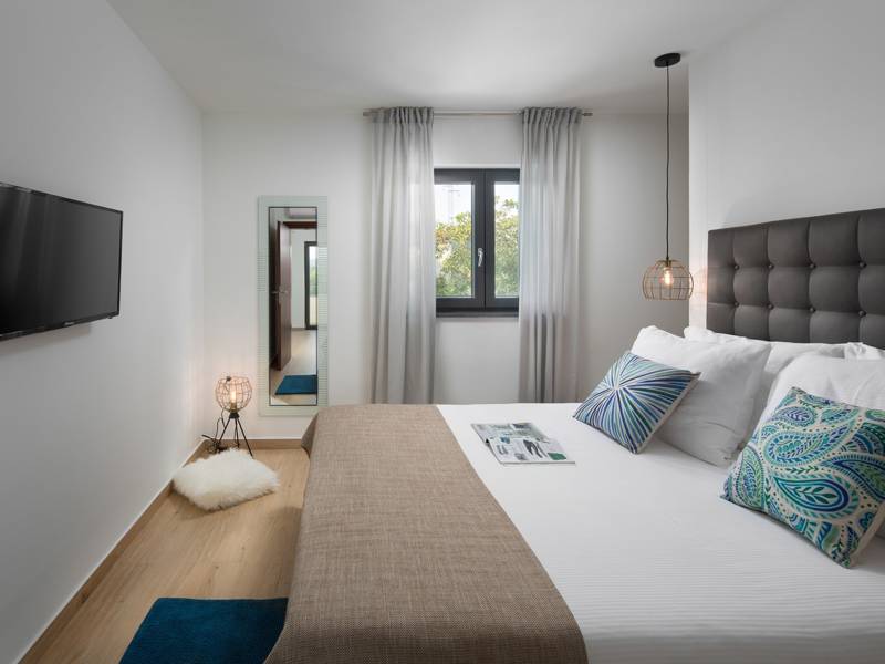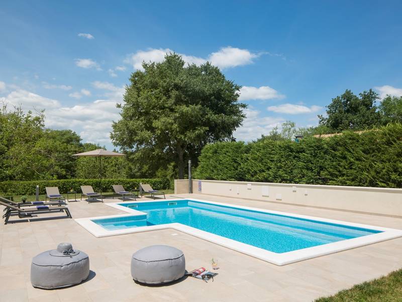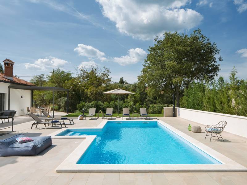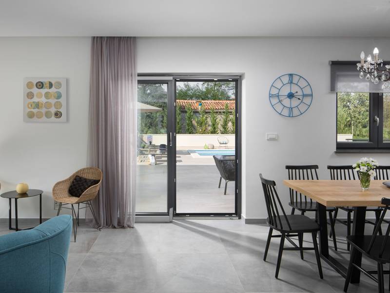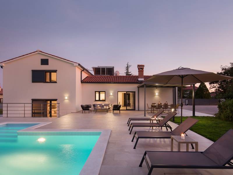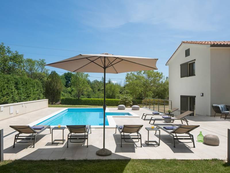 Located on the eastern coast of the Istrian peninsula, in the picturesque town of Labin, the beautiful Villa del Sol is surrounded by Mediterranean greenery, offering guests complete privacy and tranquillity. The fully air-conditioned villa offers 200 m2 of living space and features four bedrooms, three with double beds and one with twin beds; each bedroom has its own bathroom with a shower, underfloor heating, and a TV, while an additional separate toilet is also available. The open-plan ground floor includes a modern, fully equipped kitchen, a bright dining area, and a spacious living room ideal for relaxation. The fully enclosed 800 m2 garden features a private swimming pool measuring 9.5 x 3.5 m, sun loungers, parasols, a comfortable outdoor seating area, a barbecue, and a covered dining area for eight guests, as well as four private parking spaces. Labin enchants visitors with its rich offer and historic old town showcasing Venetian, Gothic, Renaissance, and Baroque architecture, and is located just 5 km from Rabac and its beautiful pebble beaches, making Villa del Sol an excellent choice for a relaxing holiday in Istria.