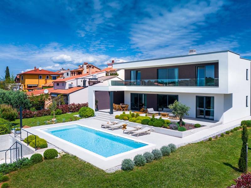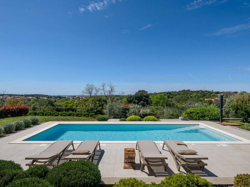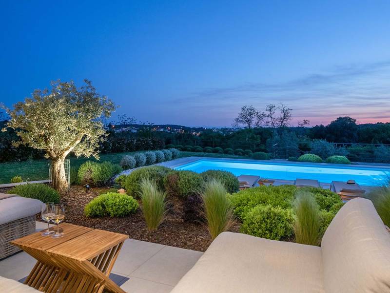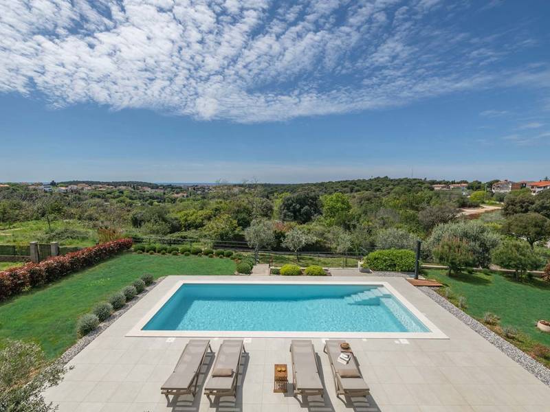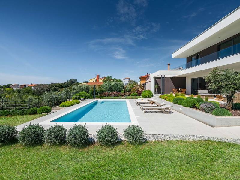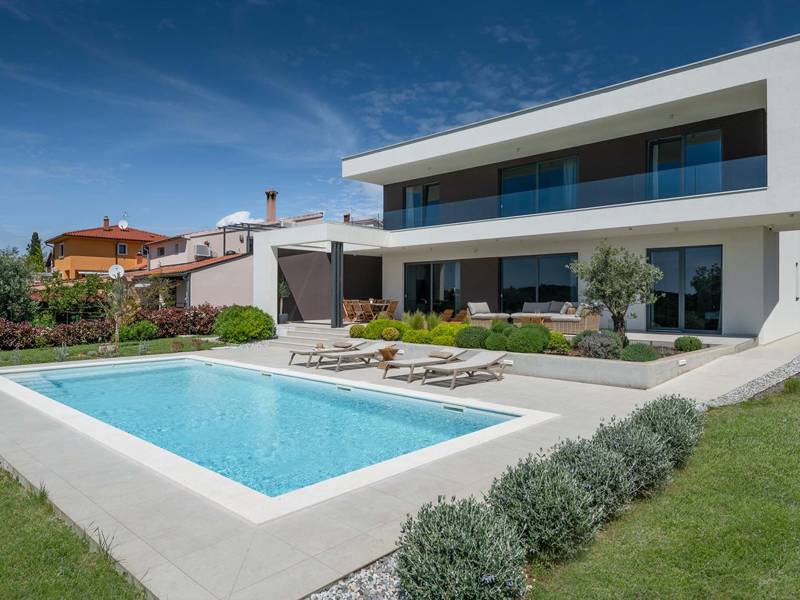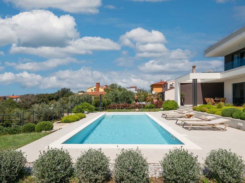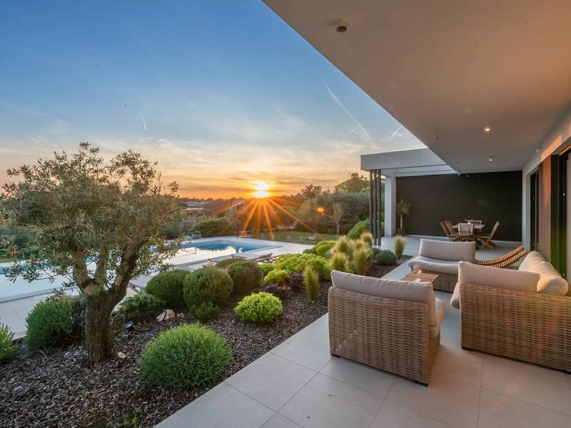 You will be amazed by the beauty and functionality of this modern beauty. It is in a small town near Pula, the largest city in Istria. The perfect location in a cul-de-sac with no traffic ensures constant silence. The villa is oriented to the southwest, and every room offers a beautiful view of the sea and nature. The modern interior will delight lovers of aesthetics. It consists of 4 bedrooms, each with a private bathroom. There are four bathrooms and an extra toilet and it is a proper choice for eight people. Each room has access to a spacious terrace that offers a unique view of the sunrise in the summer evenings. Villa is fenced so you have complete privacy. The outdoor area includes a large private hydromassage pool with salt water, an outdoor fireplace, a relaxation area, and a terrace. The nearest beach is only 600 meters away. Near are restaurants and shops. It is perfect for all lovers of a quiet vacation, in silence, and natural beauty, but it is also a perfect choice for adventurers. Nearby is Pula which offers a rich nightlife and various events, and on the other hand, there is beautiful Kamenjak. On Kamenjak you can see the remains of dinosaurs, many beach bars, beaches, and adventure bike trails.Some of the properties don’t allow youth groups. If you are booking an accommodation facility as a group of young individuals, contact our agency before making the reservation in order to check whether the requested property allows your stay.The minimum age for booking accommodation is 30 years.Groups under 30 years of age are not allowed.