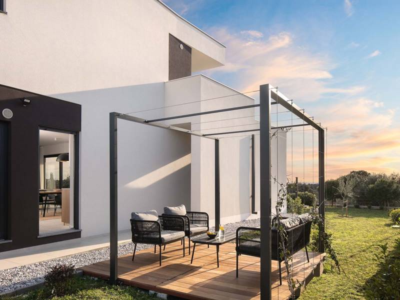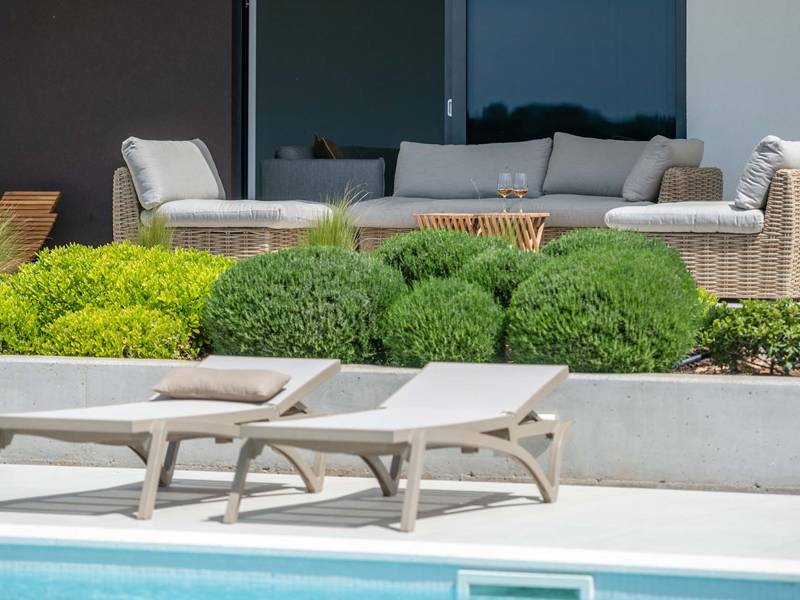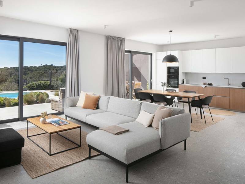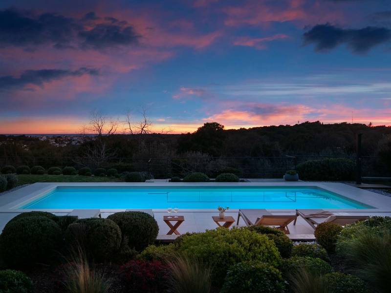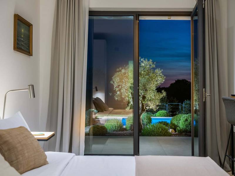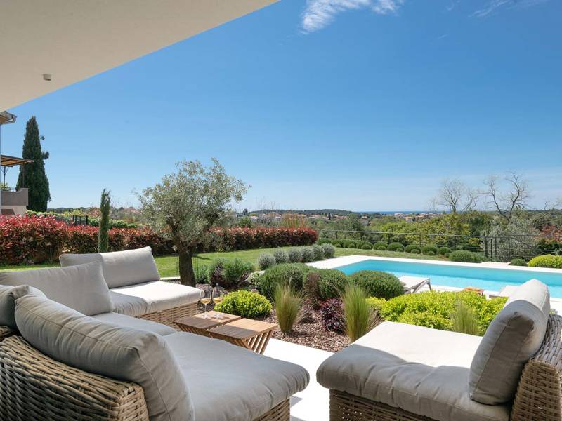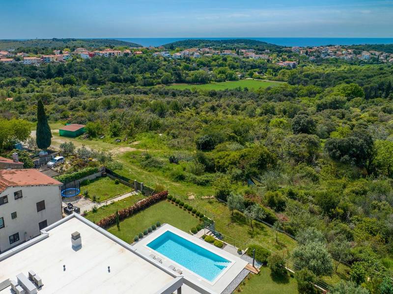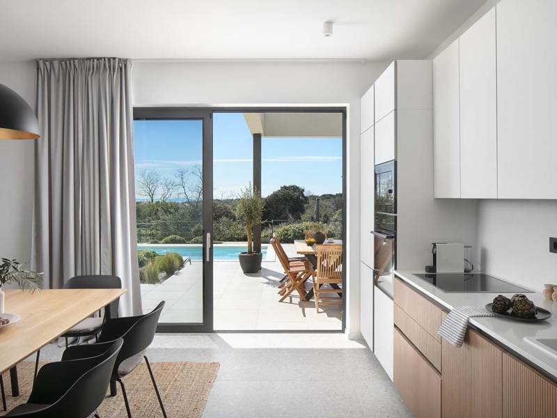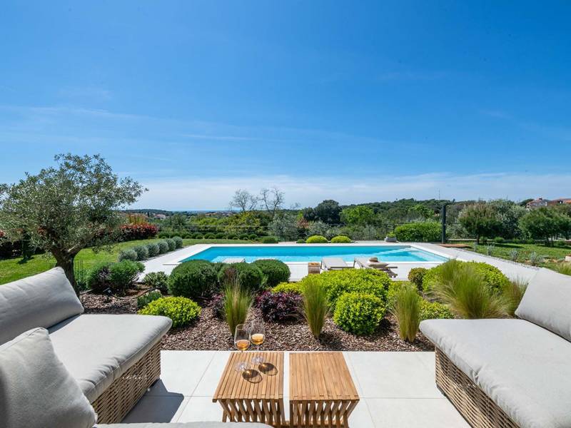 You will be amazed by the beauty and functionality of this modern beauty. It is in a small town near Pula, the largest city in Istria. The perfect location in a cul-de-sac with no traffic ensures constant silence. The villa is oriented to the southwest, and every room offers a beautiful view of the sea and nature. The modern interior will delight lovers of aesthetics. It consists of 4 bedrooms, each with a private bathroom. There are four bathrooms and an extra toilet and it is a proper choice for eight people. Each room has access to a spacious terrace that offers a unique view of the sunrise in the summer evenings. Villa is fenced so you have complete privacy. The outdoor area includes a large private hydromassage pool with salt water, an outdoor fireplace, a relaxation area, and a terrace. The nearest beach is only 600 meters away. Near are restaurants and shops. It is perfect for all lovers of a quiet vacation, in silence, and natural beauty, but it is also a perfect choice for adventurers. Nearby is Pula which offers a rich nightlife and various events, and on the other hand, there is beautiful Kamenjak. On Kamenjak you can see the remains of dinosaurs, many beach bars, beaches, and adventure bike trails.Some of the properties don’t allow youth groups. If you are booking an accommodation facility as a group of young individuals, contact our agency before making the reservation in order to check whether the requested property allows your stay.The minimum age for booking accommodation is 30 years.Groups under 30 years of age are not allowed.
