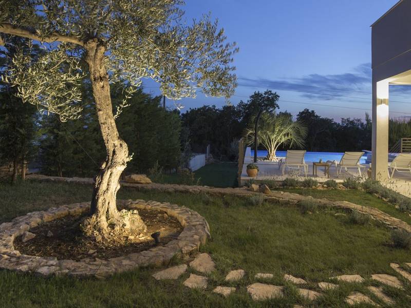 Villa Casta Diva, located in the picturesque village of Viškovići in the municipality of Raša, is the perfect retreat for those seeking peace, privacy, and a luxurious holiday in Istria. This spacious villa of 240 m2 can accommodate up to 10 guests, providing top comfort and an unforgettable stay. With four elegantly decorated bedrooms equipped with double beds, SMART TVs, wardrobes, air conditioning, and en-suite bathrooms with walk-in showers, Villa Casta Diva offers the perfect blend of luxury and comfort. Two of the upstairs bedrooms open onto a spacious terrace with stunning sea views. The living room exudes modern design and comfort, featuring a SMART TV, a Hi-Fi system, a fireplace, and underfloor heating, while the fully equipped kitchen and dining area allow for the preparation and enjoyment of shared meals. The outdoor space of the villa is ideal for relaxation, boasting a 58 m2 infinity pool with a hydro-massage waterfall, counter-current swimming, and a shallow area for children. There is also a jacuzzi for six people, perfect for evening moments under the sunset, while the wellness area offers a sauna, a Laconium with heated benches, and direct access to the terrace. Fitness enthusiasts can enjoy a private fitness studio, and younger guests can have fun at the children’s playground. The entire outdoor space is complemented by a Mediterranean garden with aromatic herbs and a romantic seating area. Villa Casta Diva is located in a peaceful village surrounded by nature, only 3 km from the nearest beach in Koromačno and 15 km from the town of Labin, offering the perfect balance between privacy and proximity to all necessary amenities. Book your stay at Villa Casta Diva and experience a luxurious holiday in the heart of Istria, where natural beauty and top-notch comfort come together for an unforgettable experience.Pool heating with a heat pump is available on request from April to October - Extra charge €150,00 per week - weather related temperature.Damage deposit: €100 per person (for groups of young people, provided they agree to the house rules, €200 per person). Minimum deposit 500 EUROne pet is welcome with an additional fee of 100 EUR per week