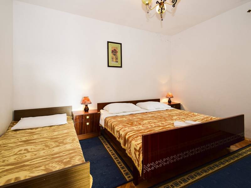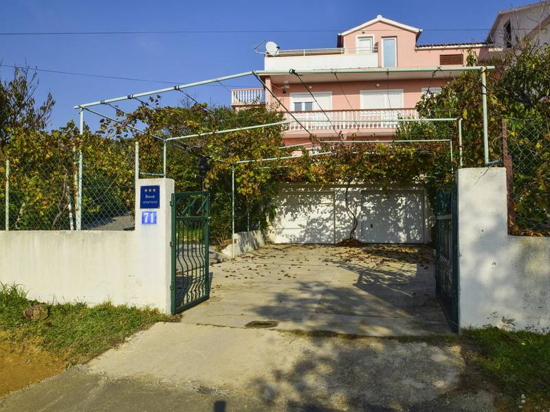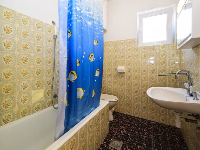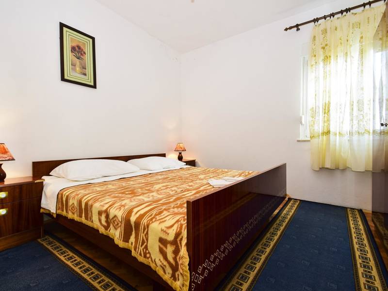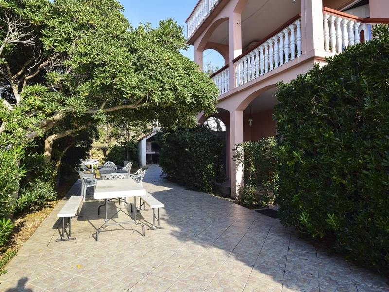 If you need a relaxing vacation, away from the crowds and surrounded by nature, this accommodation is exactly what you were looking for. It is located in a truly special place, surrounded by trees and flowers. Two bedrooms are available to guests, and both bedrooms have double beds and one separate bed for one additional person. The apartment has an equipped kitchen and a bathroom. The spacious balcony offers a beautiful view of the sea, and the beach is only a hundred meters away. Barbecue is available in the garden. A parking space is provided in front of the building and there are no additional costs.