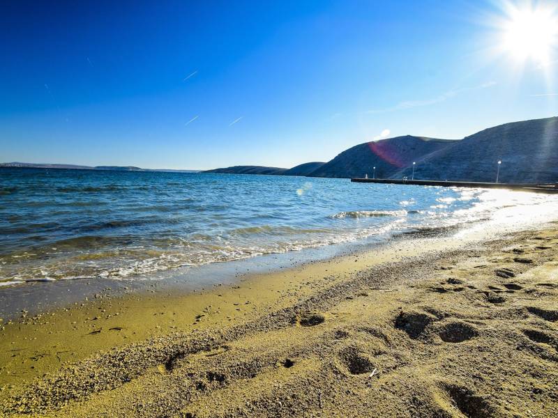 A peaceful and quiet place suitable for a pleasant vacation, and the beautiful sandy and pebble beaches are ideal for families. The cove in Vlašići is certainly one of the most beautiful sandy beaches on the island of Pag. Vlašići is a place of agricultural tradition where you can taste homemade Pag cheese and lamb, as well as quality homemade wine from friendly hosts. In August, this place is the scene of the famous Village Olympics, where a dozen teams from various regions compete in interesting traditional village games. KUD "Sveti Jeronim" operates in Vlašići, which nurtures traditional dances. The beach in Vlašići is 800 meters long and is one of the most beautiful sandy beaches on Pag - the special feature of this beautiful beach is that it is bordered by a natural wall made of reddish soil. Scenes that leave you breathless with an incredible view are certainly a lure for all travelers, and there is an a la carte restaurant on the beach.