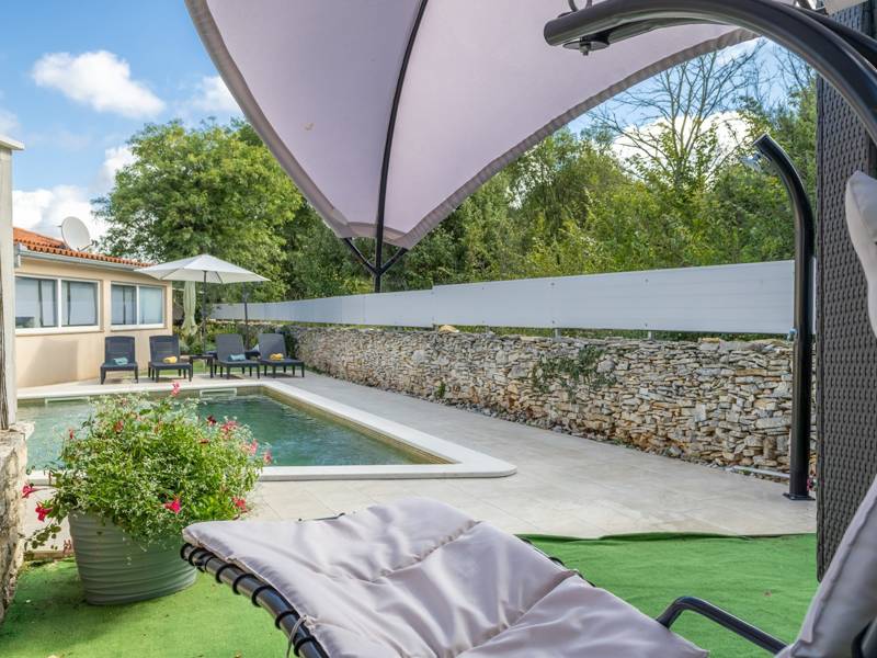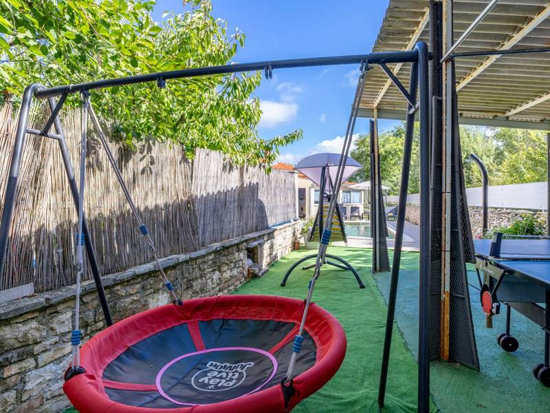 Located in the quiet village of Kacana near Vodnjan, this one-story house offers comfortable accommodation for 6 people. With three bedrooms, a large living room and a fully equipped kitchen, it is ideal for a relaxing family vacation. Two bathrooms with showers ensure additional comfort. In the beautifully landscaped yard full of greenery, there is a private swimming pool, perfect for refreshing on hot summer days. Next to the house is a covered terrace with a summer kitchen, ideal for outdoor gatherings and outdoor meals. A parking space is provided, and the distance to the sea is 10 km.