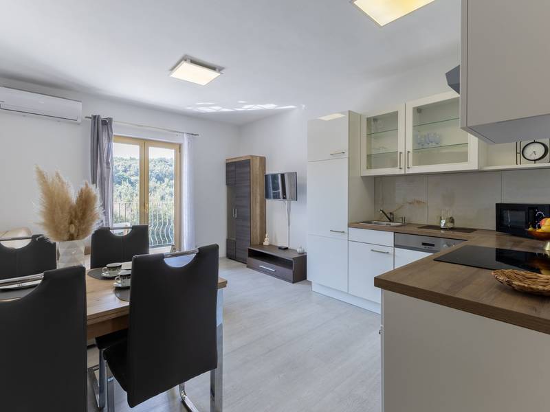 The apartment for 4 persons is located on the second floor in a quiet part of Vrsar, ideal for a relaxing holiday. It consists of one bedroom with a comfortable double bed and a living room with a sofa bed, making it suitable for a family or a smaller group.Guests have at their disposal a fully equipped kitchen with a dining area, a bathroom with a shower and a washing machine, as well as a balcony perfect for morning coffee or evening relaxation. The apartment also includes a secured parking space.It is located about 1000 meters from the sea and 800 meters from the center of Vrsar, which allows easy access to beaches, restaurants and all important amenities, with enough peace and privacy during your stay.