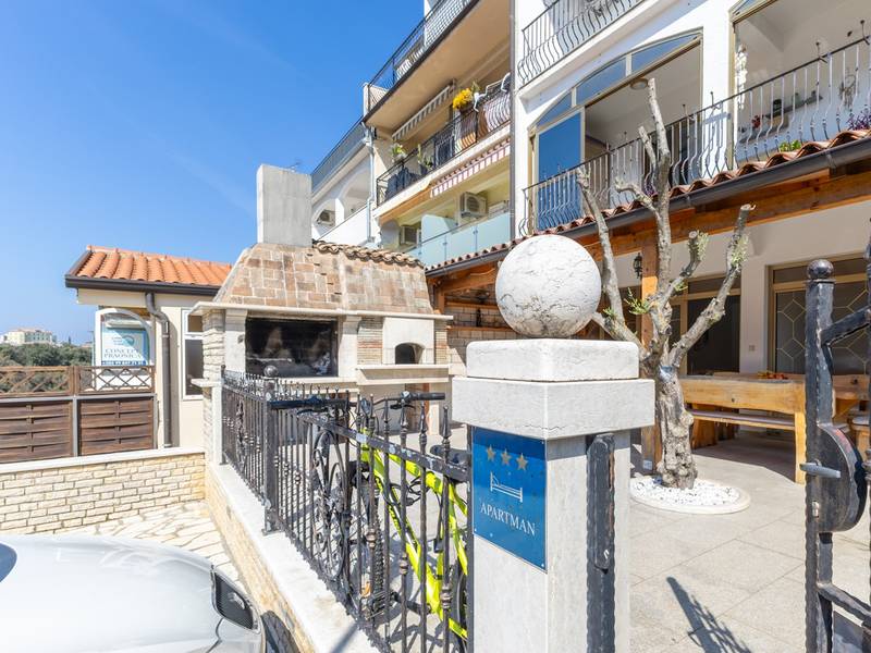 This cozy apartment in Vrsar is located on the ground floor and is ideal for a family vacation or a stay with friends for up to 6 people. It consists of two comfortable bedrooms, a kitchen and a living room that provides a feeling of a homely atmosphere. A special advantage of the apartment is a spacious terrace with an outdoor barbecue, perfect for relaxing and enjoying warm evenings with good food and company. The apartment is located in a quiet location, only 1000 meters from the sea and 800 meters from the center of Vrsar, which allows easy access to beaches, restaurants and all necessary amenities. Guests are provided with a free parking space, which further contributes to a carefree stay.