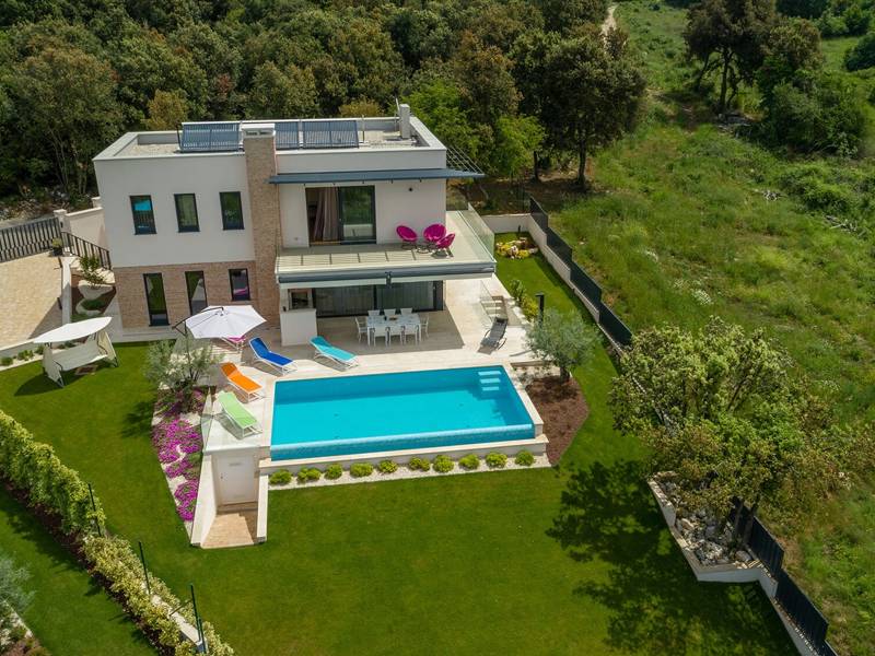 If you are looking for a stylish villa within walking distance to a beach and restaurants, and yet you want privacy, then Villa Maja is your best bet! Situated on the hilltop, this luxurious villa offers partial sea views and overlooks the historic town of Vrsar. Surrounded by a stunning garden filled with olive trees and Mediterranean plants, the property features a private infinity pool that enhances its tranquil atmosphere.The ground floor opens into a stylish living room connected to a dining area and a fully equipped kitchen, all of which have access to a roofed terrace with bbq—ideal for sipping coffee in the morning or enjoying a glass of wine in the evening.The first floor houses three bedrooms, each with a private bathroom and TV, ensuring comfort and privacy for all guests.Adding to the luxury, there is a sauna on the ground floor, perfect for unwinding after a day at the beach, plus an additional separate bathroom with a shower.Villa Maja is not just a stay but a complete experience. It's an excellent base for friends or families aiming to create lasting memories of a sun-soaked holiday. Just a 10-minute walk from the nearest beach, and close to the marina with its top-tier restaurant and scenic views of the sea and yachts, Villa Maja offers both the convenience of location and the luxury of privacy and comfort in one of the most sought-after spots by the coast.