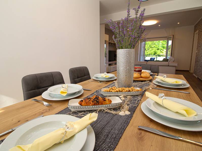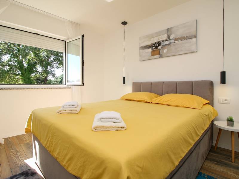 This spacious 160 m2 apartment is an ideal choice for a relaxing holiday in a peaceful and quiet setting, just a few minutes’ drive from the center of Poreč and its most famous attractions. It accommodates up to 6 guests and features three bedrooms with double beds and two modern bathrooms. Guests can enjoy a fully equipped kitchen, dining area, and a comfortable living room with TV and streaming services. A standout feature is the private pool, complemented by a landscaped garden, as well as a terrace and balcony overlooking greenery and the pool. The apartment is fully air-conditioned and offers free WiFi and private parking, making it perfect for families and those seeking comfort, privacy, and a high-quality stay in Istria.