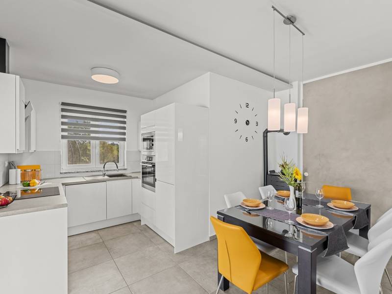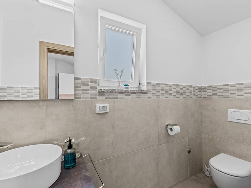This beautiful holiday home is located in the quiet village of Feštini, not far from Žminj, and offers the perfect escape from everyday stress. With three spacious bedrooms and three elegantly decorated bathrooms, this house offers supreme comfort and privacy for a maximum of 6-8 people.The spacious living room is equipped with modern furniture and provides an ideal place for relaxing with the TV or spending time with family and friends. The open concept kitchen, which is fully equipped with all the necessary appliances, is connected to the dining room and has access to a spacious terrace. The terrace is the perfect place to enjoy morning coffee or evening meals in the fresh air.The yard is carefully landscaped and completely fenced, providing security and privacy. In the centre of the garden there is a swimming pool with deckchairs where guests can relax and enjoy the sun. Enjoy complete peace and quiet, surrounded by the natural beauty of Istria.Pets are allowed, 1 dog is included in the rental price.The house is modern and tastefully furnished, with carefully selected details that create a pleasant atmosphere. It is ideal for families or groups of friends looking for luxurious accommodation in a secluded but accessible location, with easy access to all the beauties of Istria.